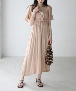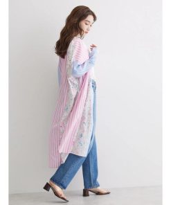 ◇ ⊂ ◎ MONO-MART モノマート 総柄 半袖 ロング丈 ワンピース サイズXL ネイビー レディース E