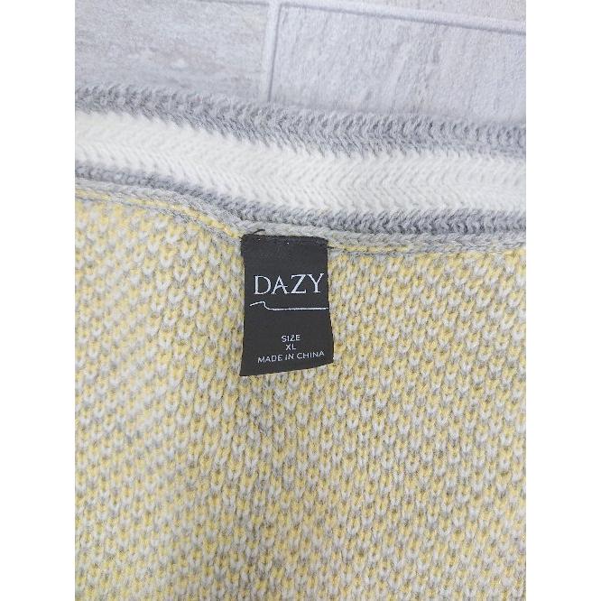 ◇ DAZY デイジー 千鳥格子 ニット 長袖 カーディガン サイズXL イエロー ホワイト レディース P