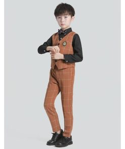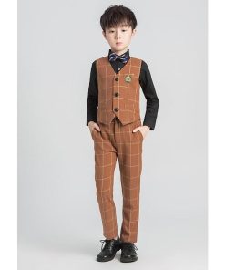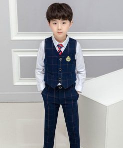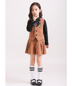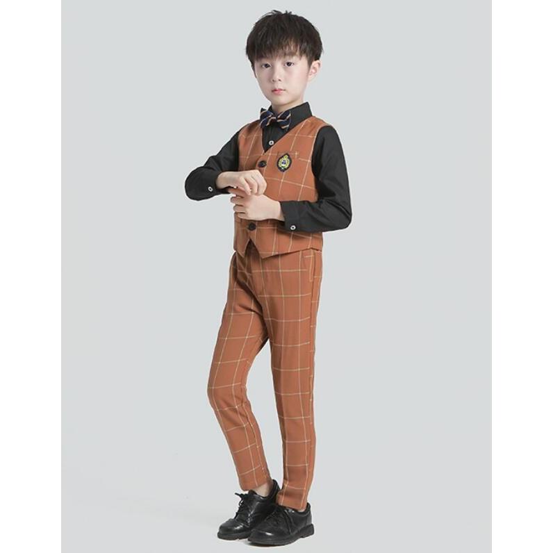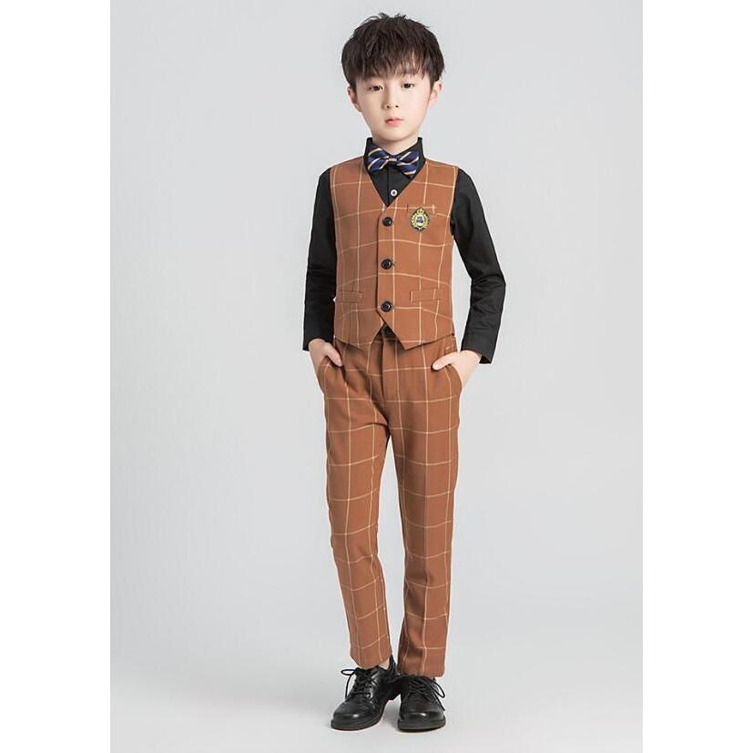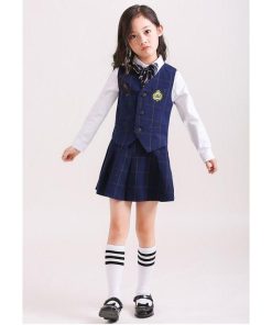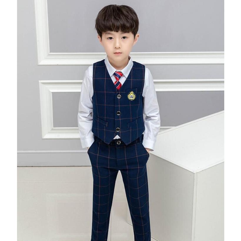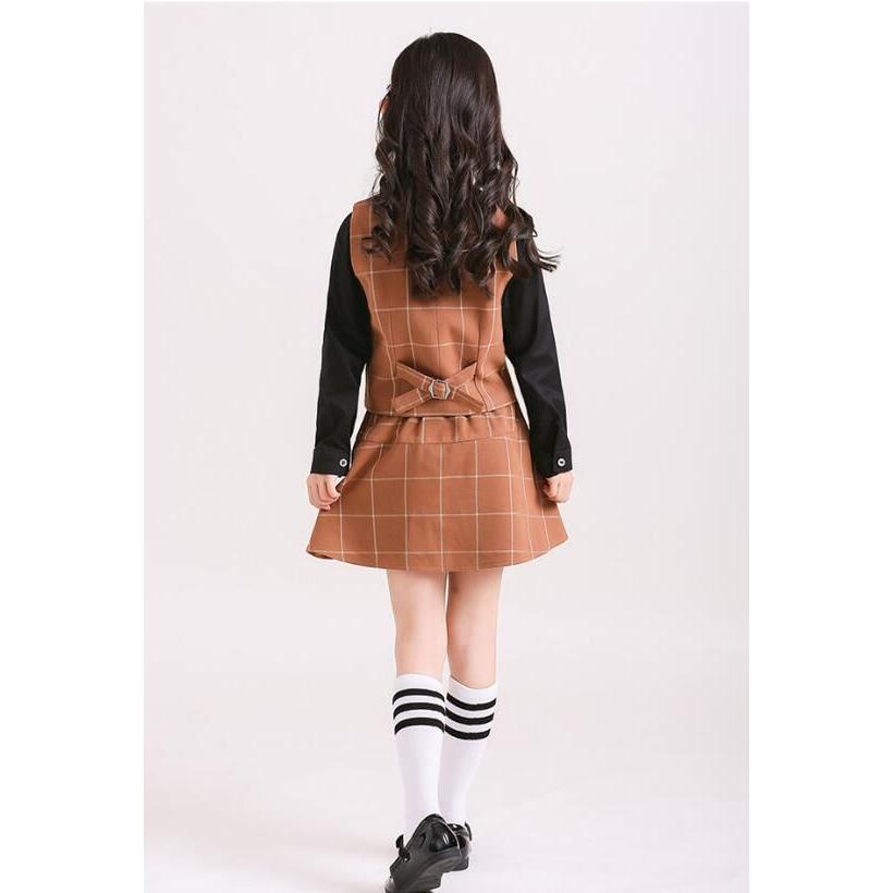 「即納」子供服 制服 スーツ セットアップ キッズ チャック柄 スーツ3点セット ジレベスト 長ズボン 膝丈スカート ワイシャツ (蝶)ネクタイ 学院ユニフォーム