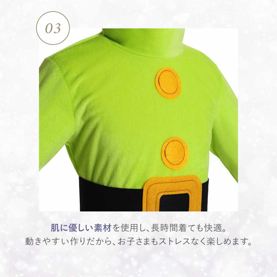 ・肌に優しい素材を使用し、長時間着ても快適。動きやすい作りだから、お子さまもストレスなく楽しめます。