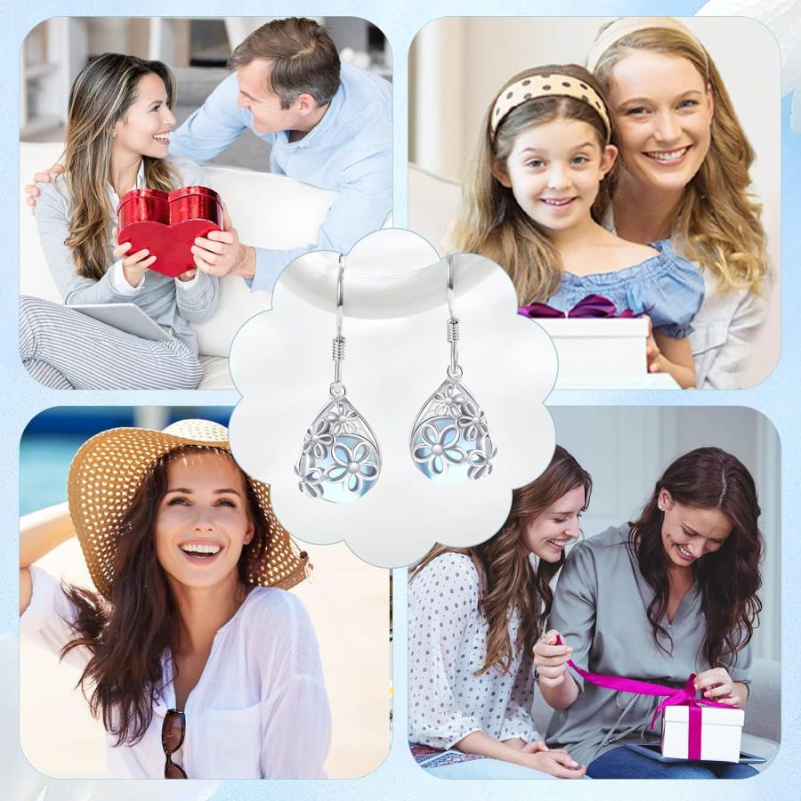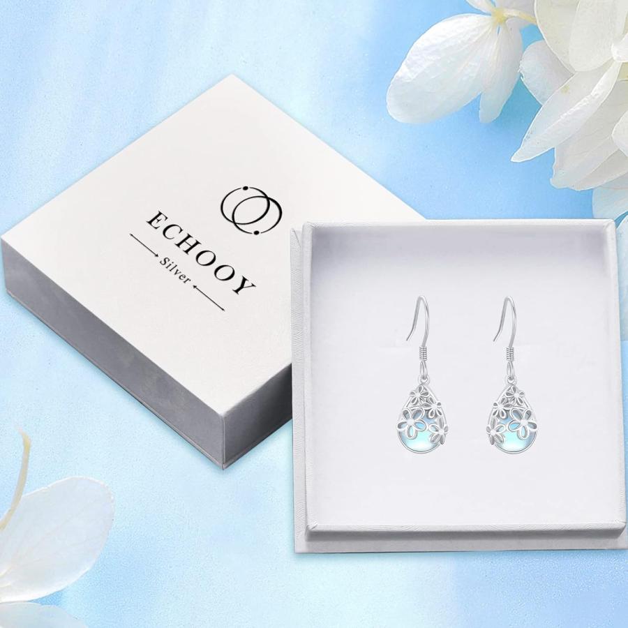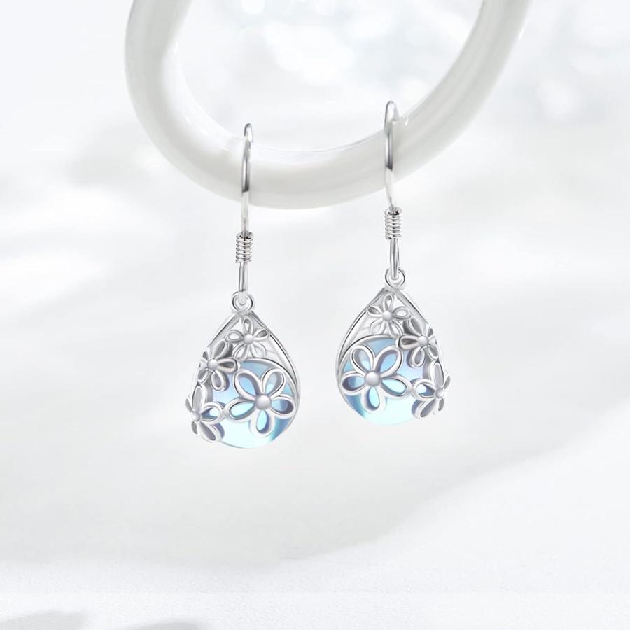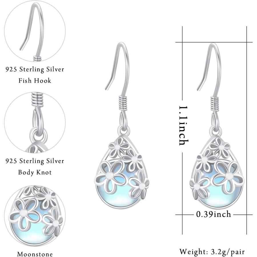 【並行輸入品】デイジー イヤリング ムーンストーン 925 スターリング シルバー フラワー ティアドロップ ダングル イ