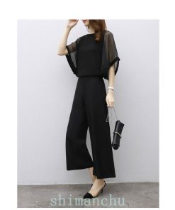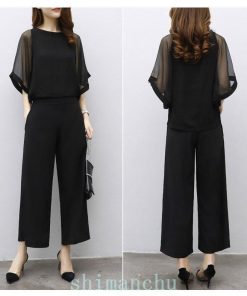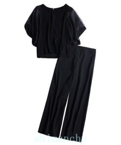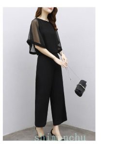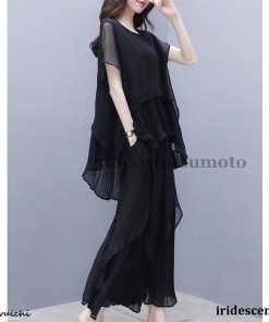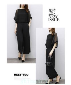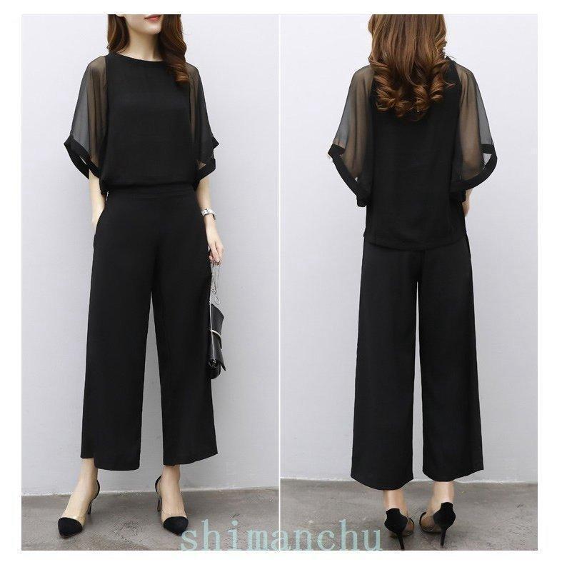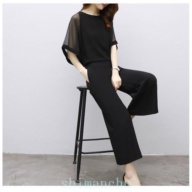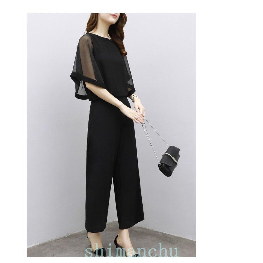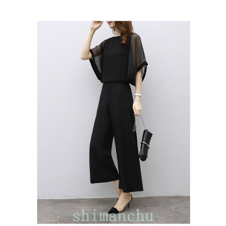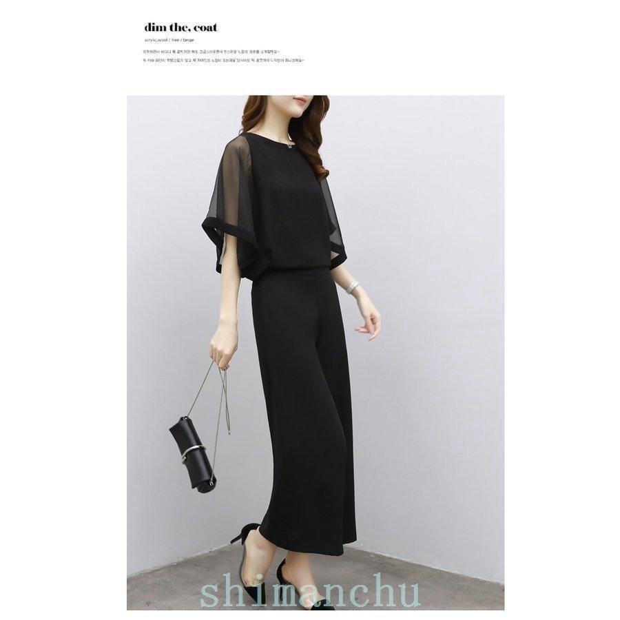【大特価】セットアップワイドパンツレディースきれいめ2点セットスシフォンブラウスフリルゆったり体型カバーフォーマル二次会30代40代入学式入園式