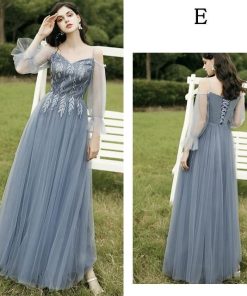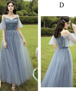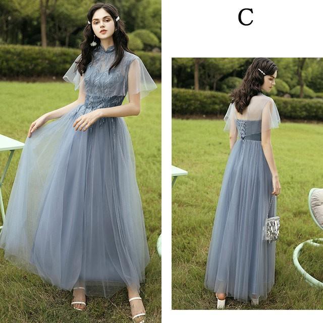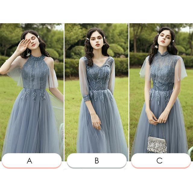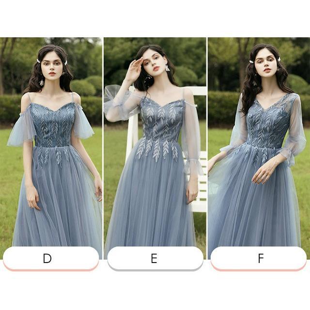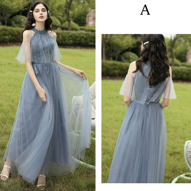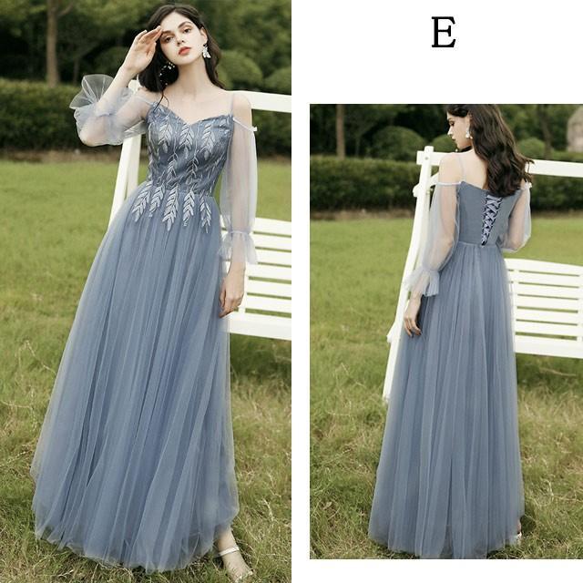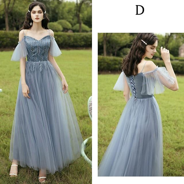 【大特価】ブライズメイド ドレス オフショルダー ロング丈 ロングドレス 結婚式 花嫁 ブルードレス Aライン 編み上げ チュールドレス 二次会 お呼ばれ