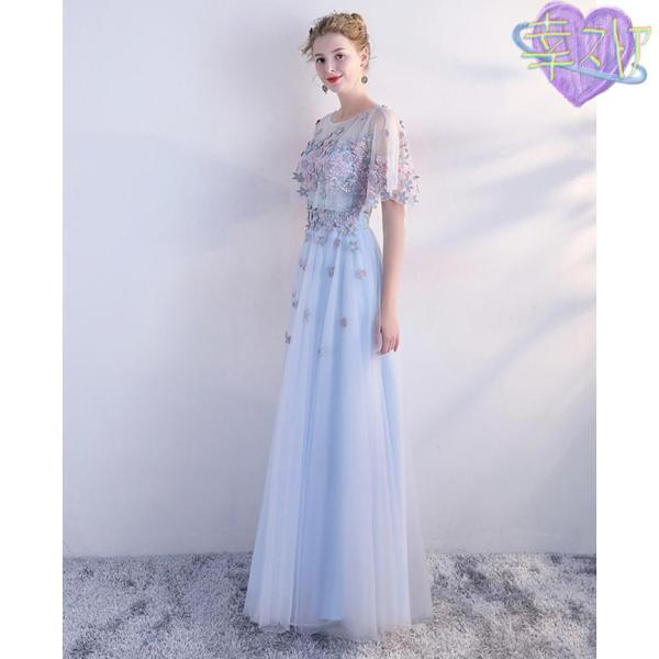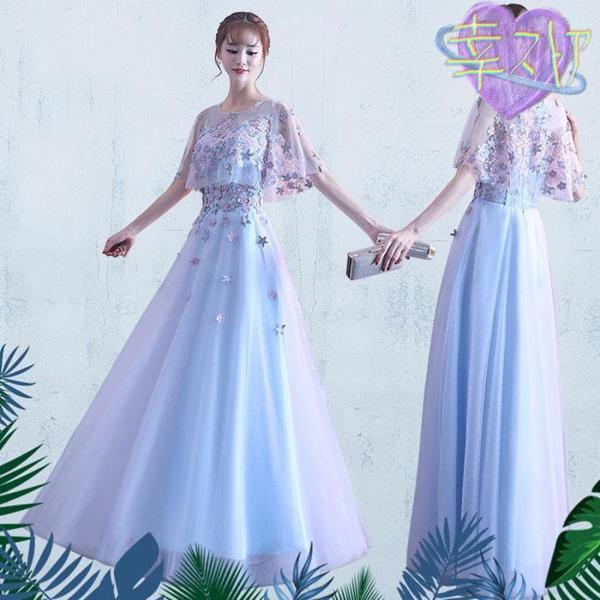 【裾上げ対応】パーティードレス ロング丈 大きいサイズ 結婚式 ピアノ 発表会 お呼ばれ 二次会 ブライズメイド 卒業パーティー ブルー