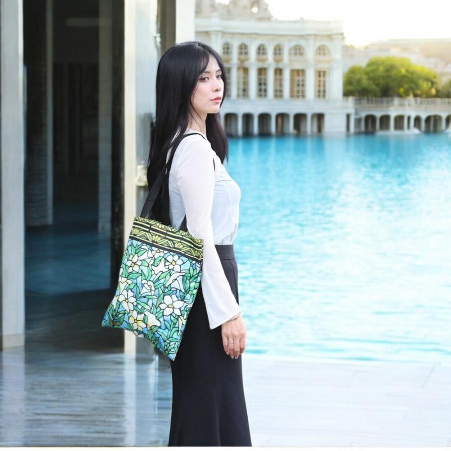 鮮やかなステンドグラスの輝き。スタイルの美しさを身に纏う、機能的なトートバッグ。