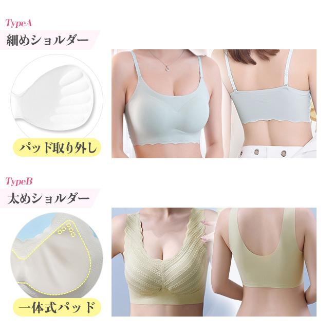 【2点目半額クーポン】シームレスブラ ナイトブラ スカラップ 美胸 ブラジャー パッド付き ノンワイヤー 昼夜兼用 インナー スポーツ ブラ 補正下着