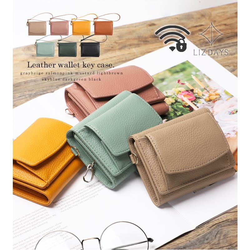 【LIZDAYS】スキミング防止 キー収納付き 本革 3つ折り財布
