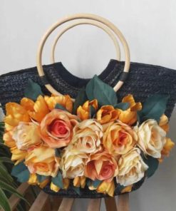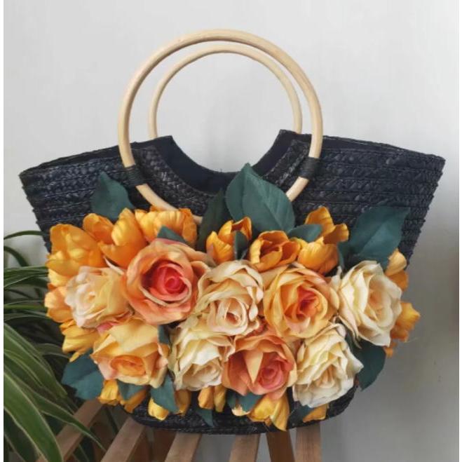 付けるだけで簡単!オシャレに大人気かごバッグと麦わら帽子のお揃いセット★沢山の造花のお花・リボンが付いているのでとっても豪華です♪海やリゾートにピッタリです。お顔周りを華やかにしてエレガントなスタイルに♪小顔効果も有り♪