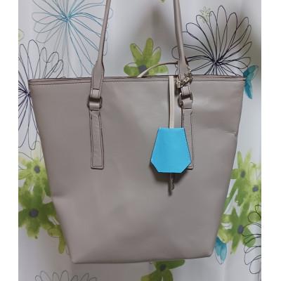 ふるさと納税 豊能町 キーカバー大 牛革プリズム型押し/スカイブルー
