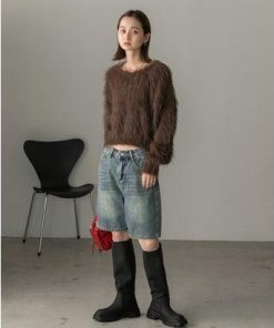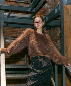 アドティエ ad thie 【2024AW新作】ふんわりシャギー ニットプルオーバー (ブラック)