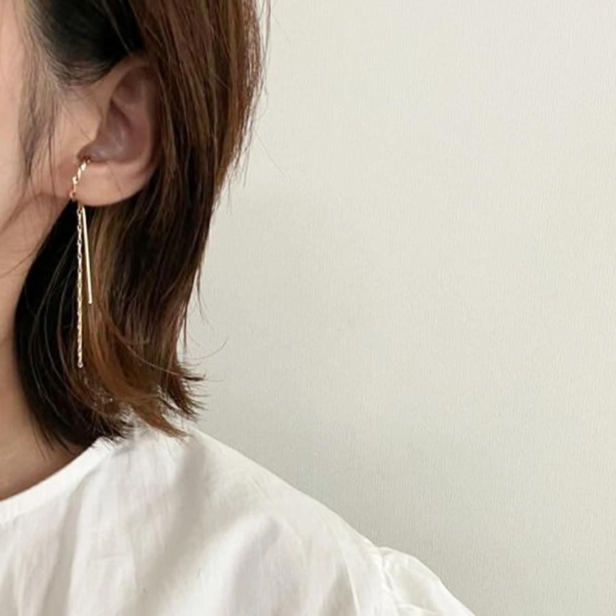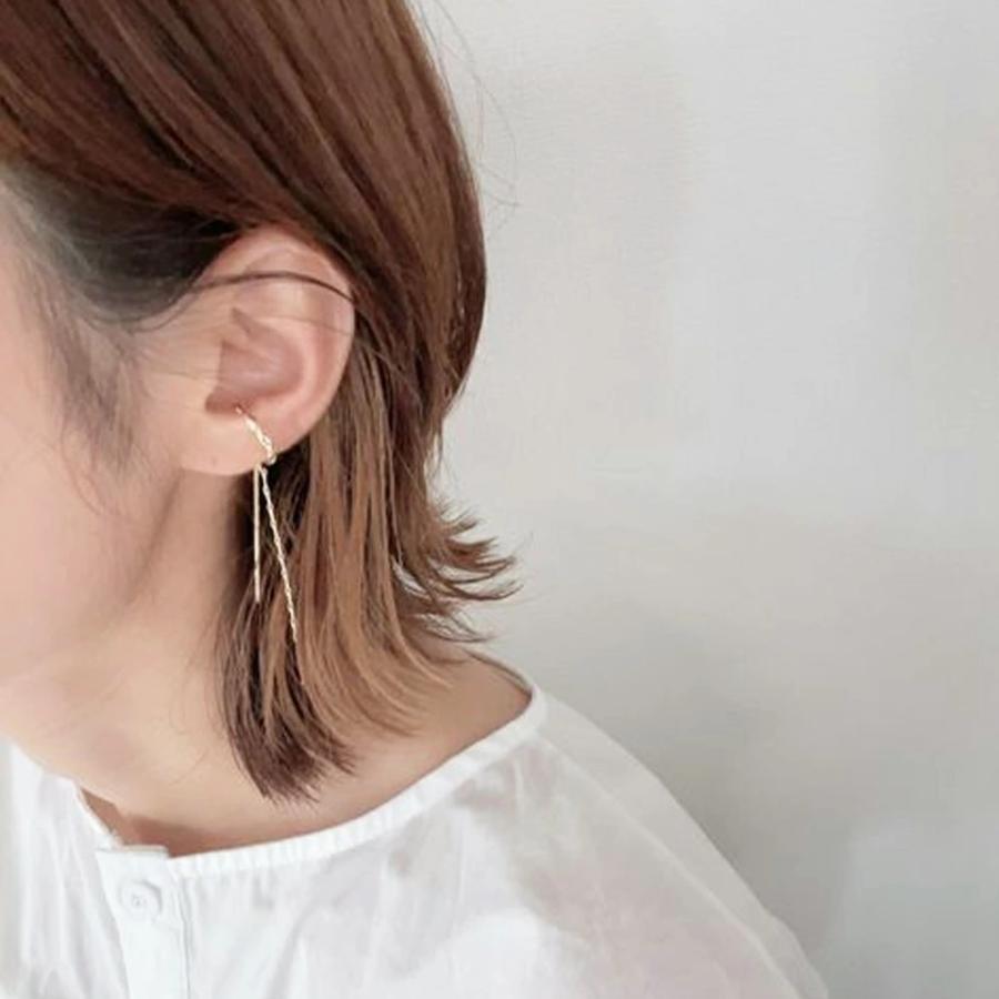 イヤーカフ イヤカフ チェーン レディース 両耳用 大ぶり フープ 金属アレルギー対応 揺れる 大人 上品 きれいめ