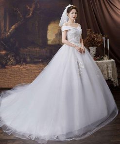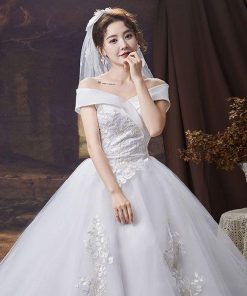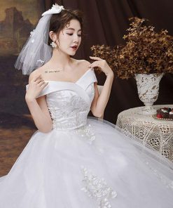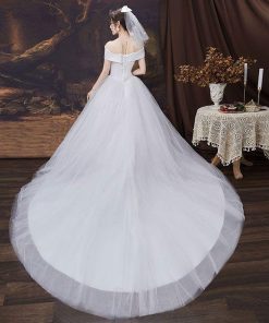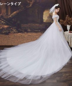 ウェディングドレス ドレス 結婚式 オフショルダー Aライン 花嫁ドレス 二次会 床付きタイプ トレーンタイプ エンパイアドレス フォトウエディング リゾートウエ