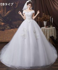 ウェディングドレス ドレス 結婚式 オフショルダー Aライン 花嫁ドレス 二次会 床付きタイプ トレーンタイプ エンパイアドレス フォトウエディング リゾートウエ