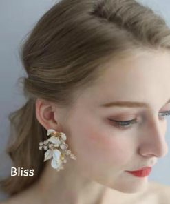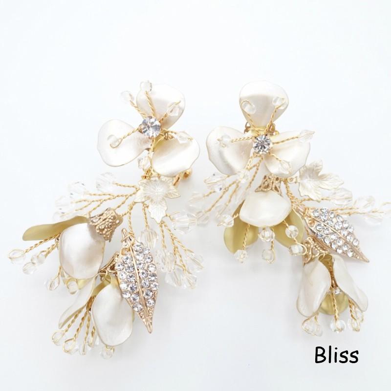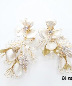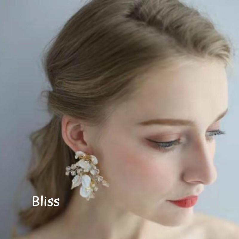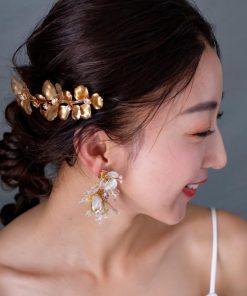 ウェディング アクセサリー【小枝 メタルフラワーリーフ イヤリング】