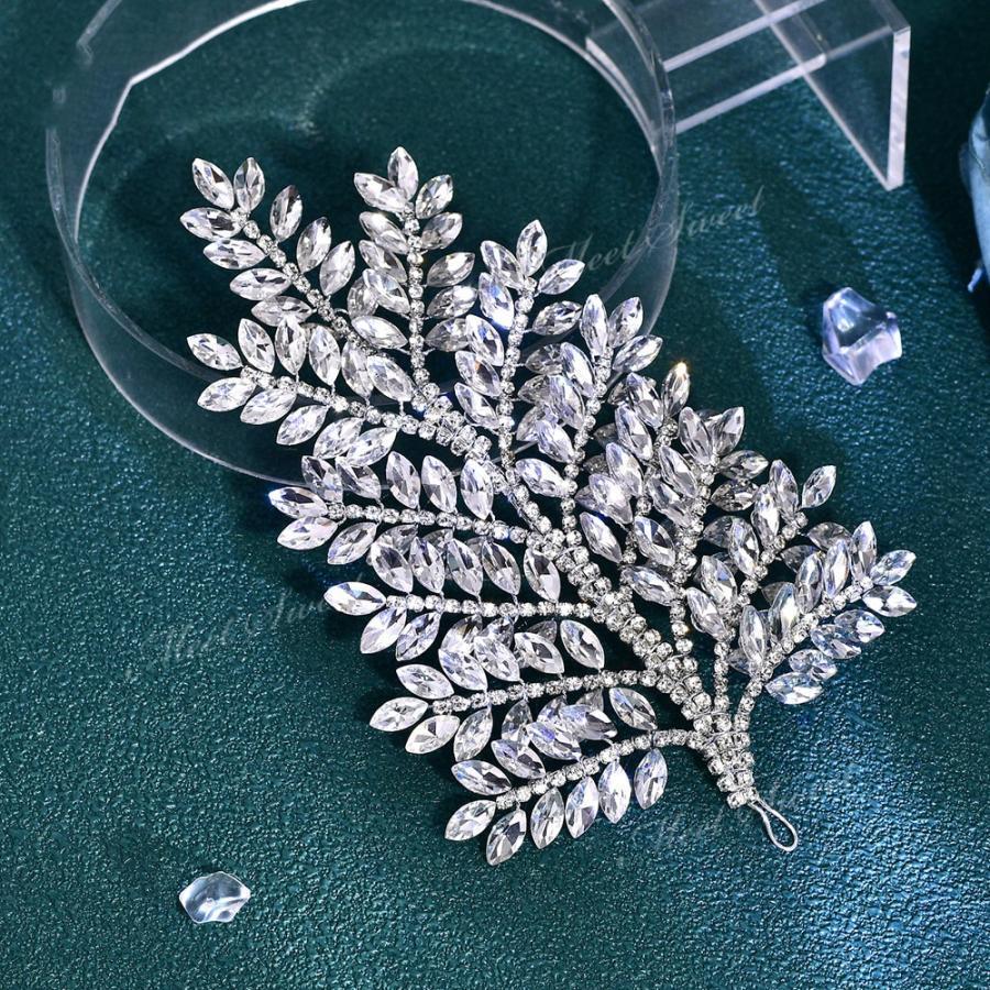 ウェデイング リーフ 大ぶり ヘッドドレス 髪飾り ブライダル 花嫁 二次会 パーティー 結婚式 披露宴 発表会 舞台 挙式 映え 前撮り シルバー ゴールド