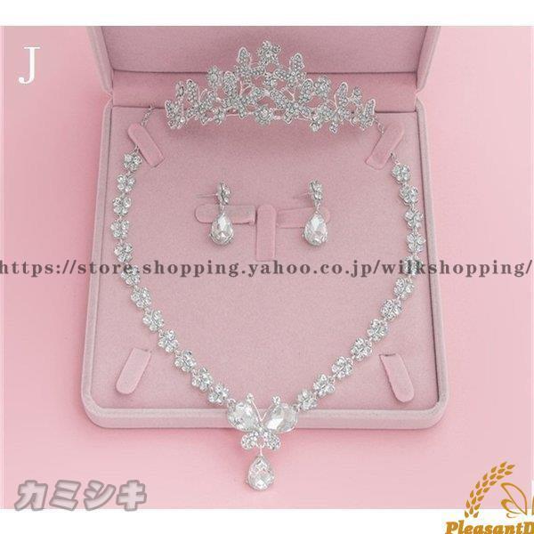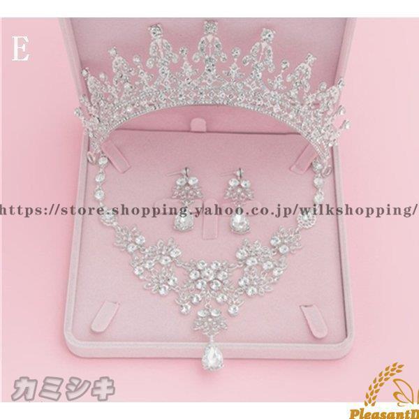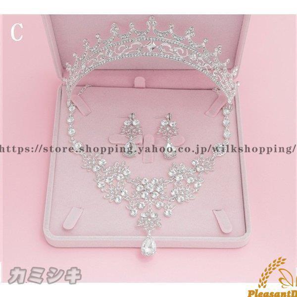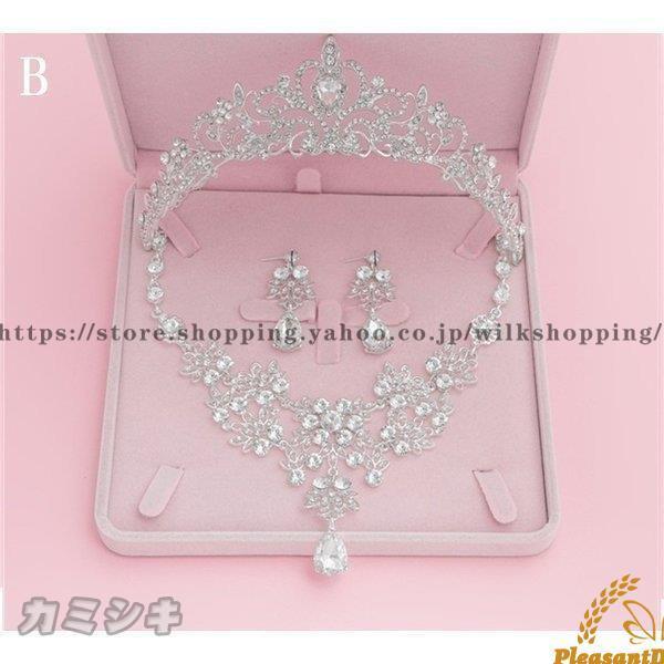 ウエディングアクセサリーブライダル3点セットネックレ+ピアス+王冠キラキラストーン3点セット花嫁用結婚式パーティーイベントティアラ