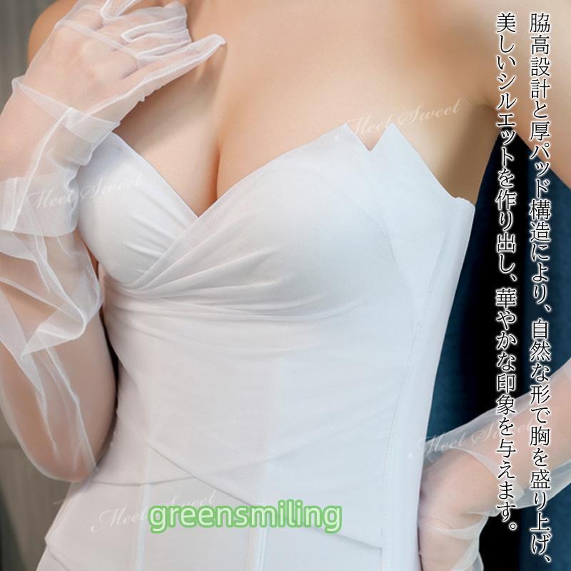 柔軟なサポート: 胸元やウエスト部分に適切なサポートを提供し、美しいシルエットを作り出します。自然な形を保ちつつ、自信を持って式場へ向かうことができます。