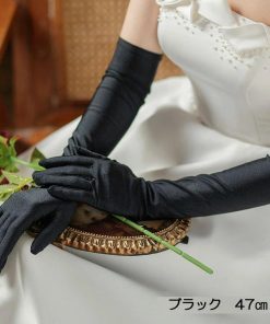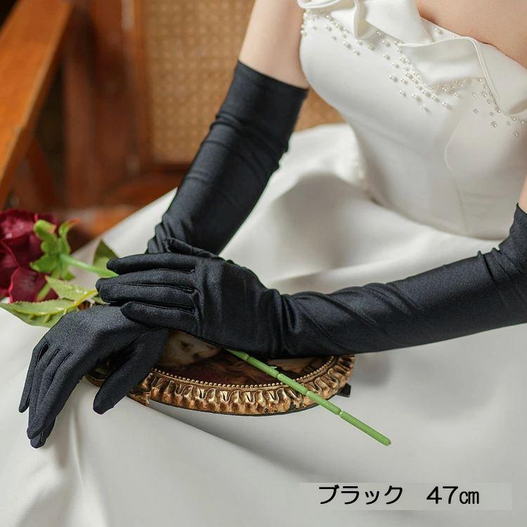 ウエディンググローブ カラーグローブ サテングローブ ロンググローブ ブラック 黒 肘上丈 47cm 結婚式 イベント 花嫁 ハロウィンコスプレ GL071150