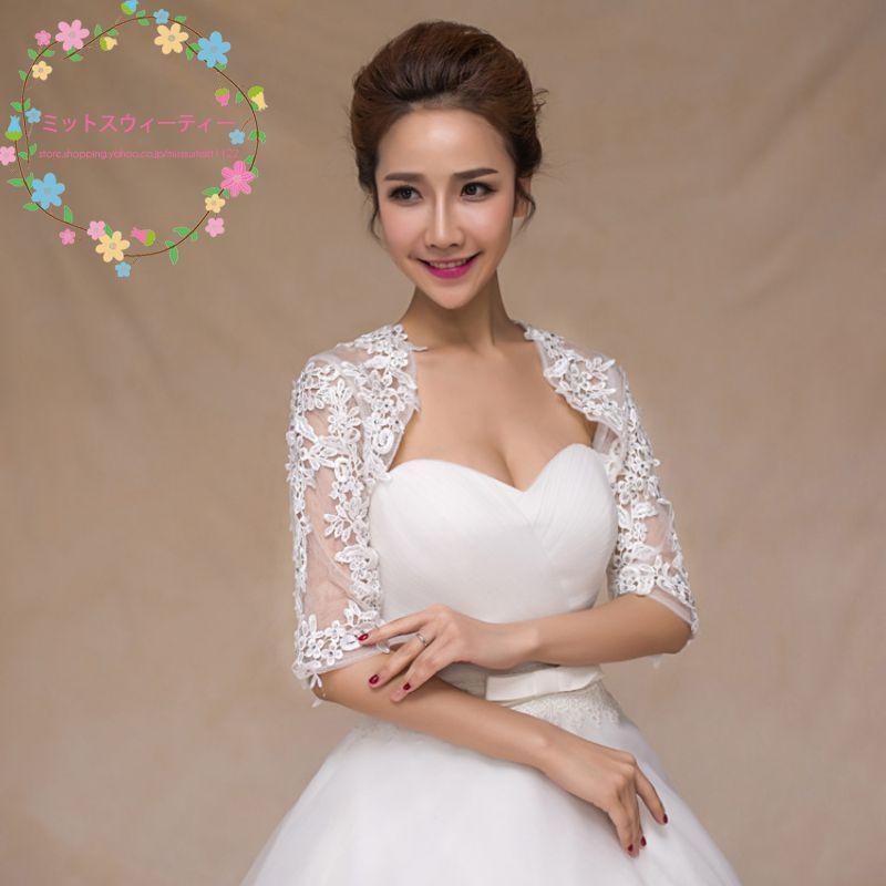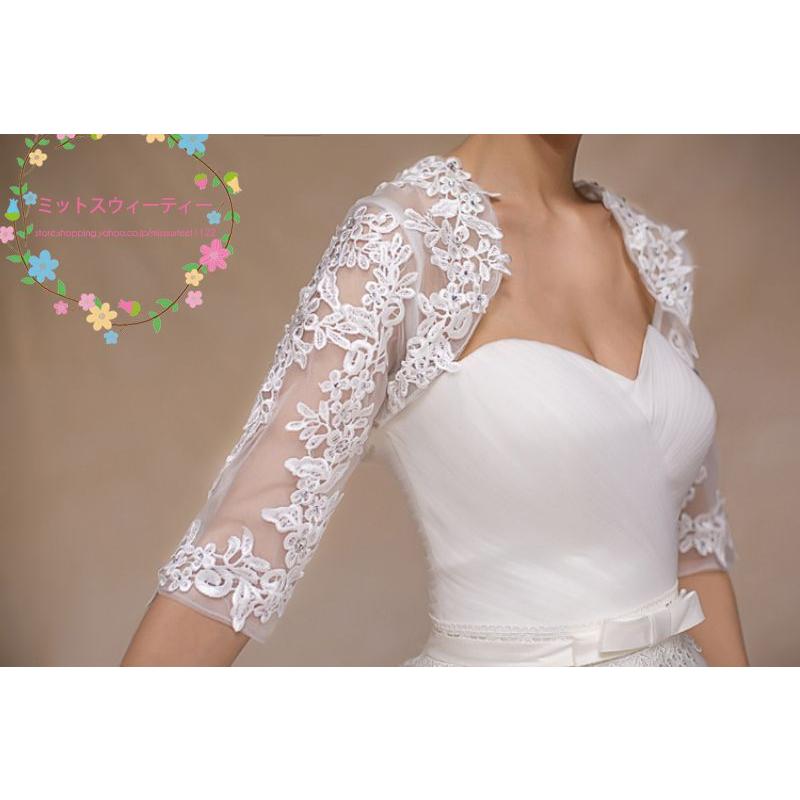 ウエディングショール 5分袖 袖あり ブライダルケープ 花嫁 ボレロ 結婚式 ブライダル 肩掛け 二次会 レース 発表会 ケープ 披露宴 ウエディングケープ