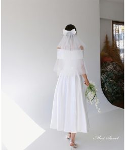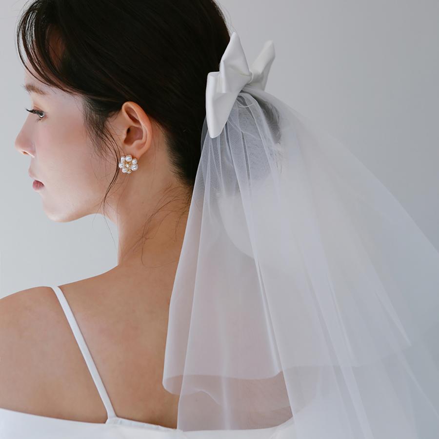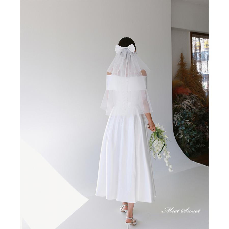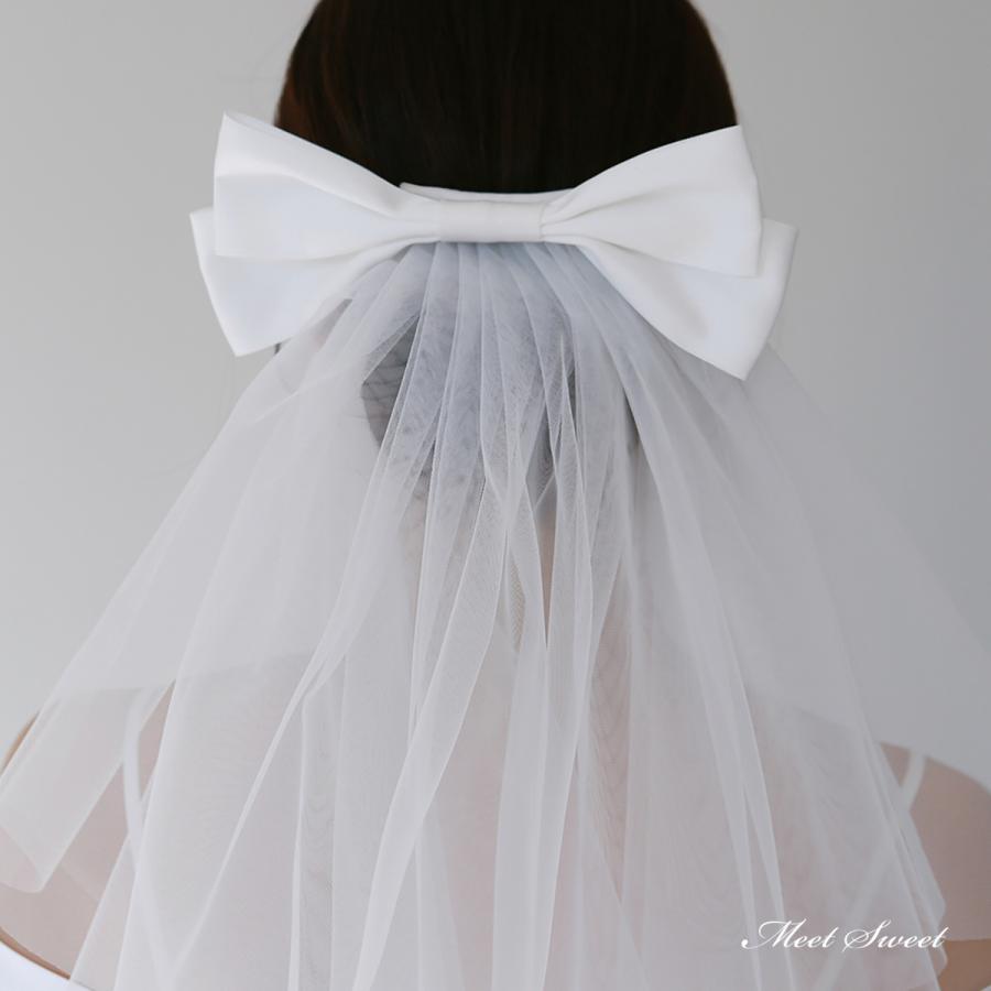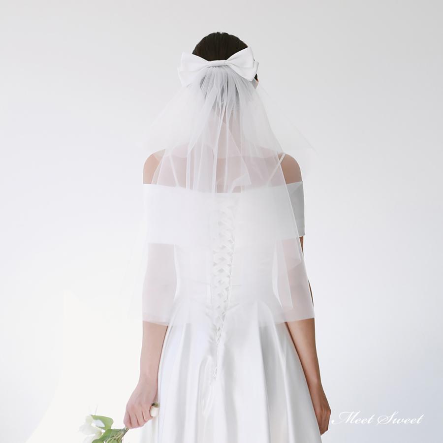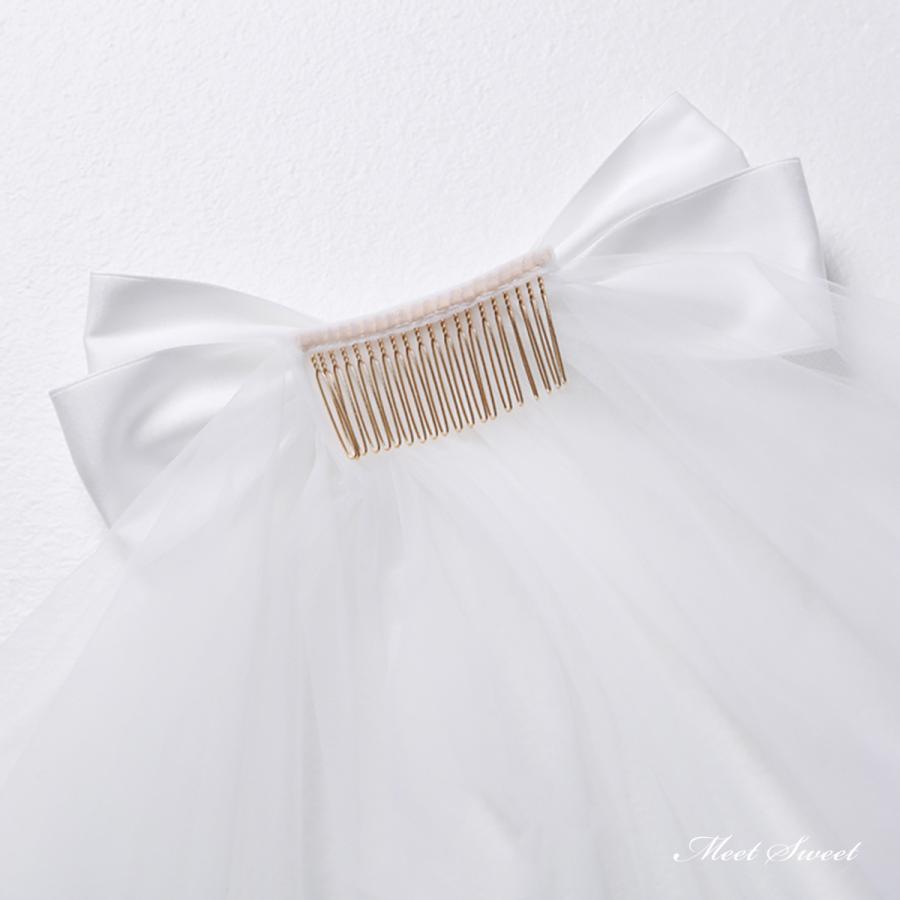 ウエディングベール ウェディングベール リボン 蝶結び ミドルベール ミディアムベール ブライダル 結婚式 二次会 披露宴 花嫁 前撮り 白 オフホワイト
