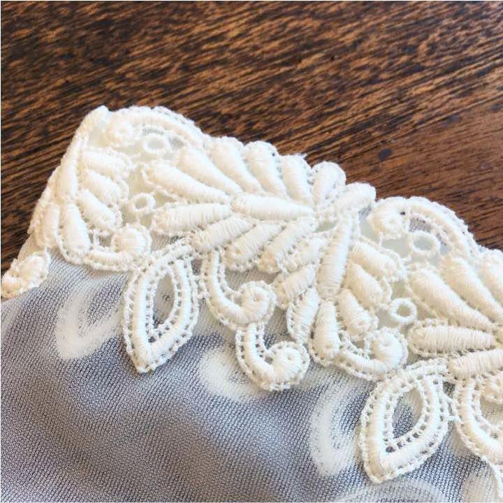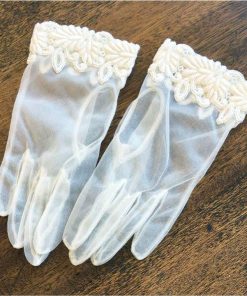 光沢のないやさしい透け感のあるグローブに、モダン柄のレースが袖口にあしらわれたデザイン。