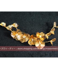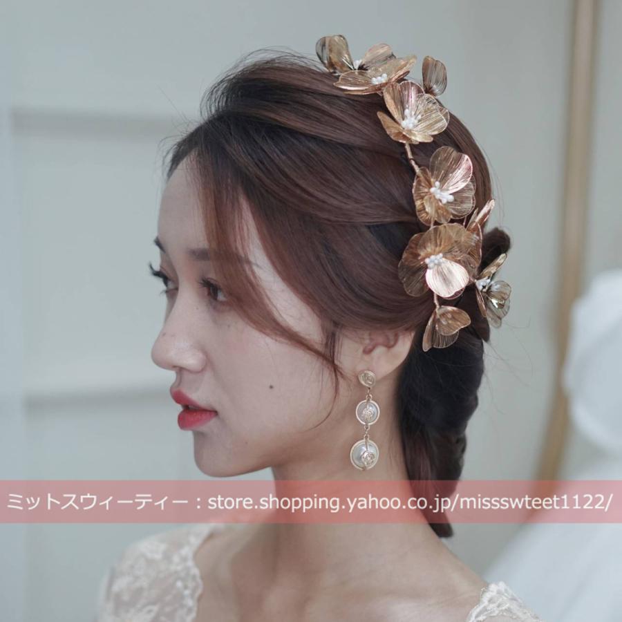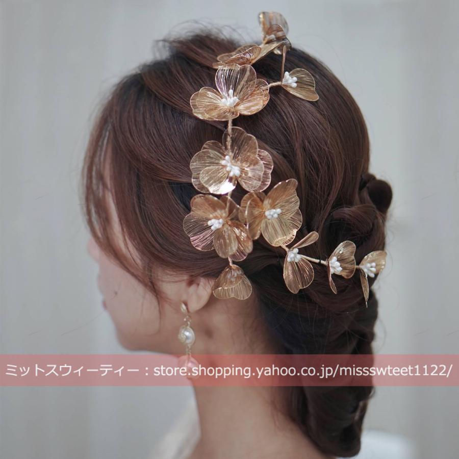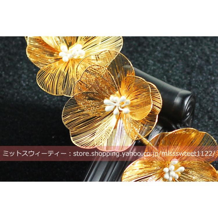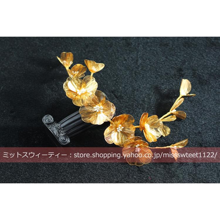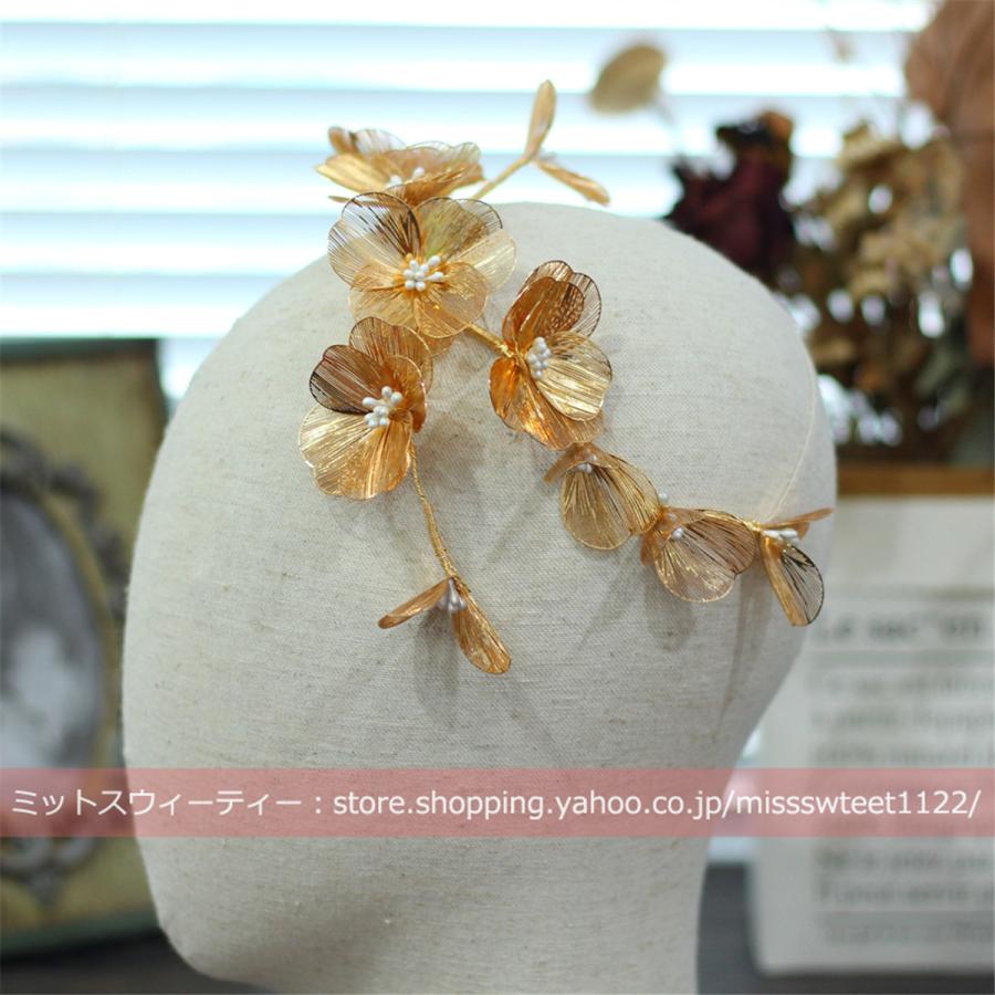 ウエディング ヘッドドレス フラワー ゴールド 花 髪飾り 花嫁 ウェディング 結婚式 発表会 演奏会 披露宴 ブライダル パーティー 二次会 ヘアアクセサリー