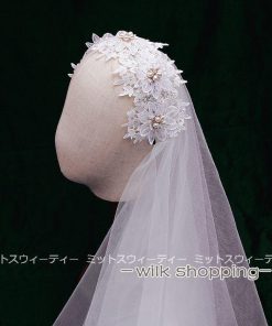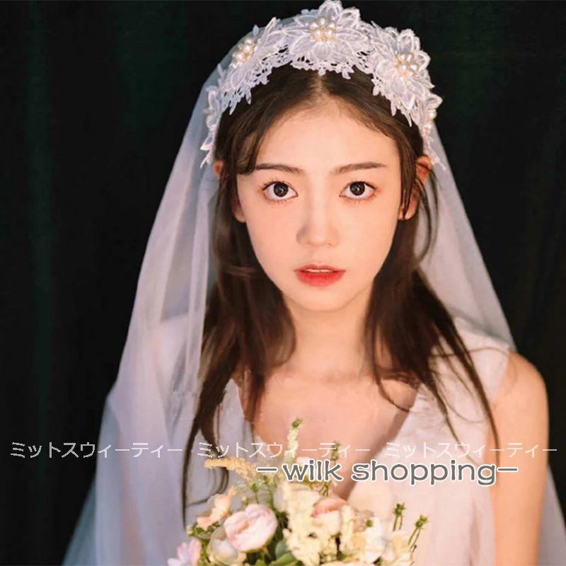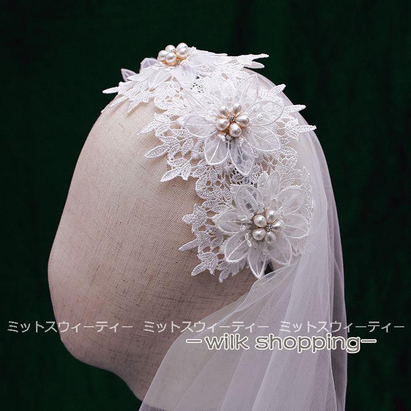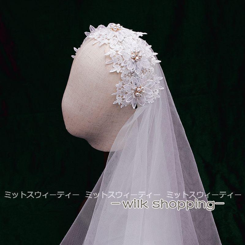 カチューシャタイプ ウェディングベール パール フラワー ヘアピン ブライダルベール 白 レトロ ショートベール マンティラウェディング 結婚式 前撮り