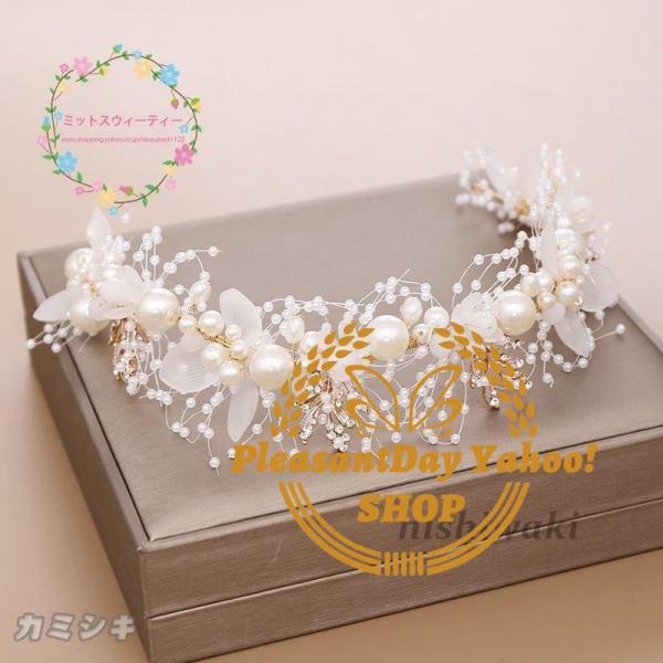 カチューシャ ビジュー パール ウェディング ウエディング ブライダル 結婚式 二次会 ヘッドドレス アクセサリー ヘアアクセサリー 髪飾り ティアラ 花嫁