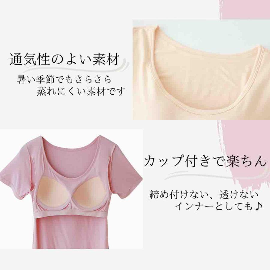 カップ付き 半袖 Tシャツ カップ付 tシャツ ブラトップ カップ付きTシャツ インナー ルームウェア レディース トップス 半袖インナー 速乾 カップ付きインナー