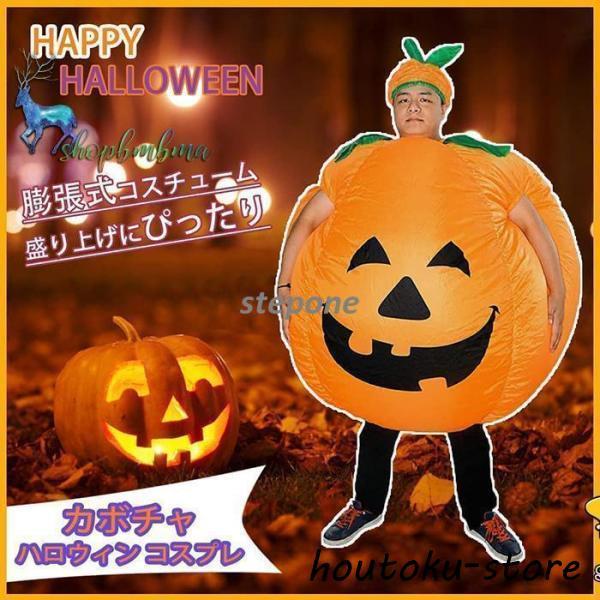 カボチャ コスプレ 仮装 コスチューム カボチャ着ぐるみ いたずら 変装スーツ おもしろい パフォーマンス道具 空気充填 膨張式 大人用 男女共用