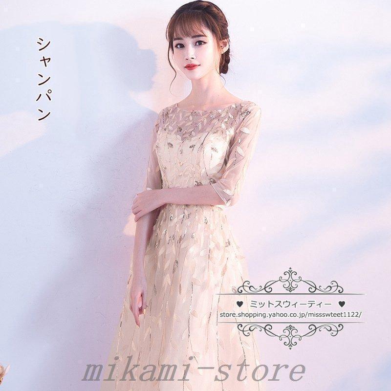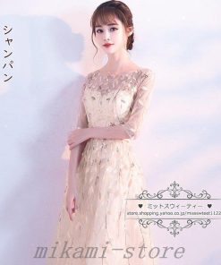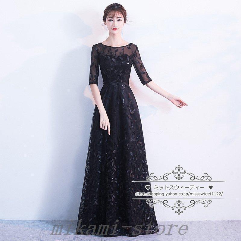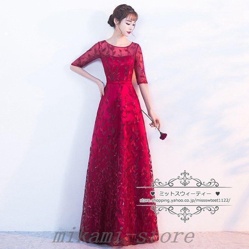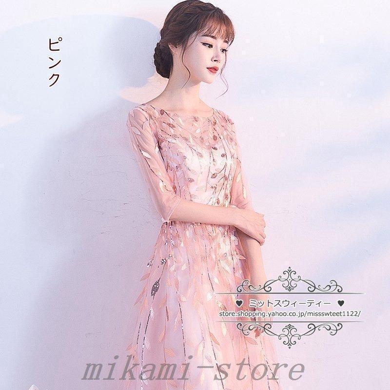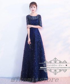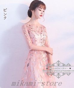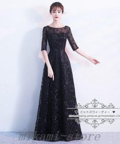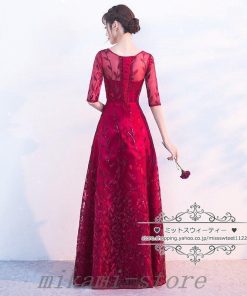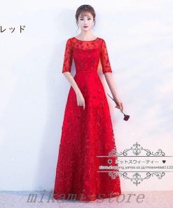 カラードレスカクテルドレスリーフ5分袖ロングドレスパーティードレス発表会演奏会ステージドレスコンクールイブニングドレスフォマール