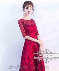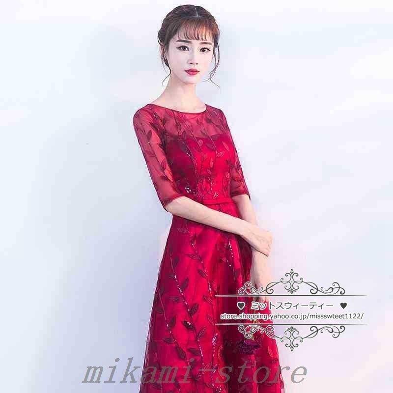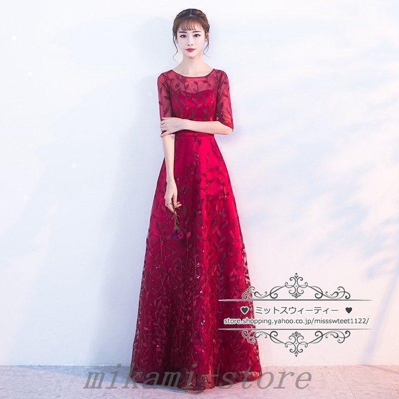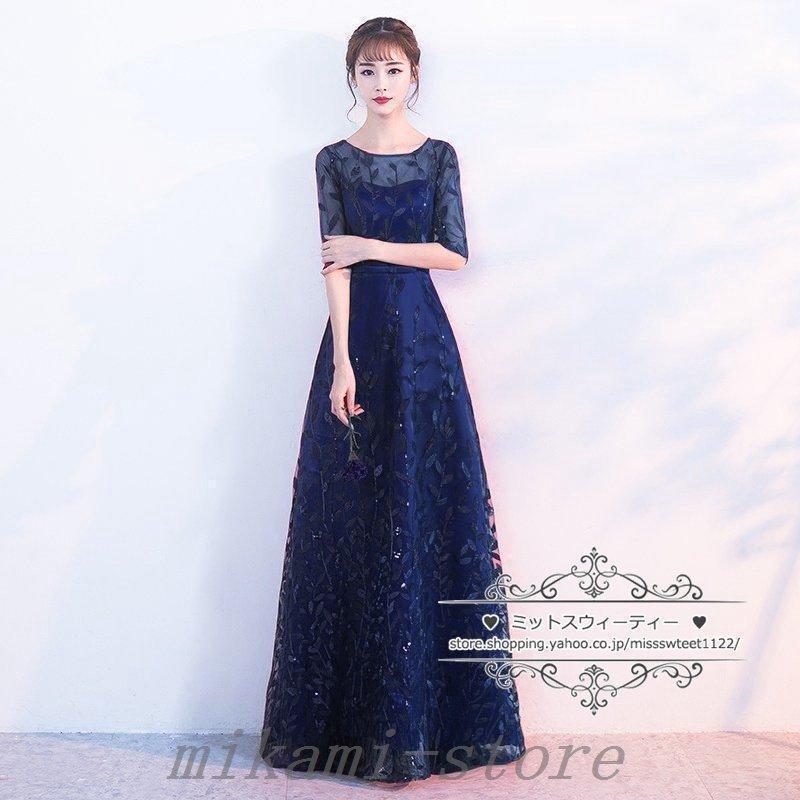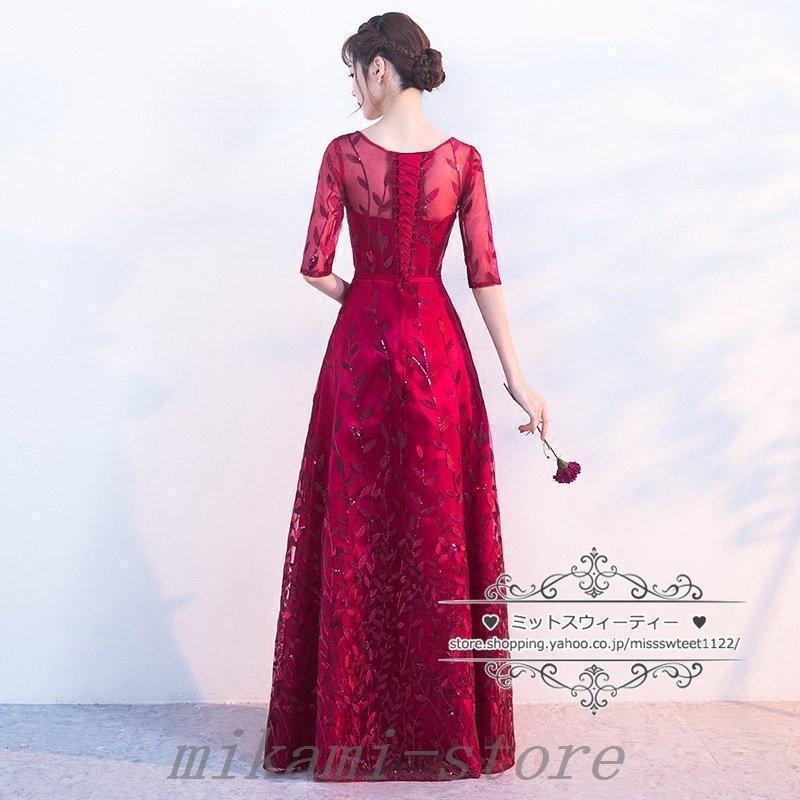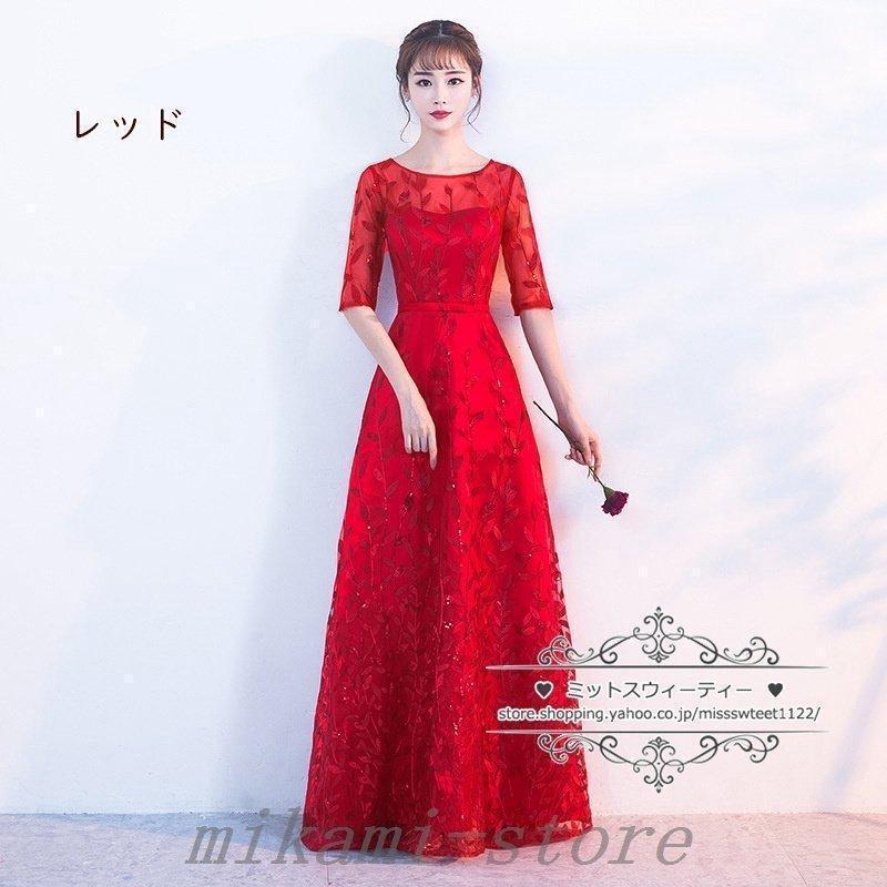 カラードレスカクテルドレスリーフ5分袖ロングドレスパーティードレス発表会演奏会ステージドレスコンクールイブニングドレスフォマール