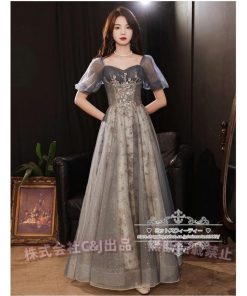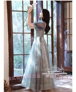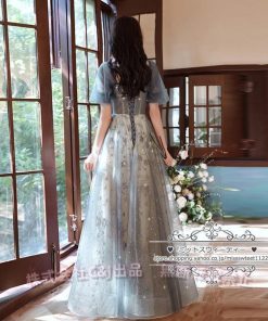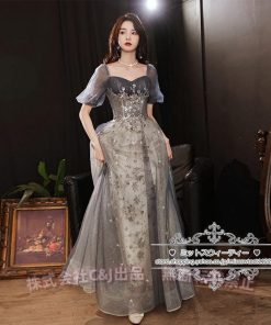 カラードレス カクテルドレス ロングドレス パーティードレス 発表会 演奏会 ステージ 袖付き イブニングドレス C&J グレー シルバー ラメ キラキラ 上品
