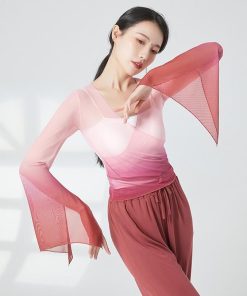 クラシカル ダンス 衣装 レディース グラデーション 古典ダンス 古典舞踊 バレエ 中国踊り 中華民族ダンス 練習着 レッスン着 長袖 袖スリット ラッパ袖 交