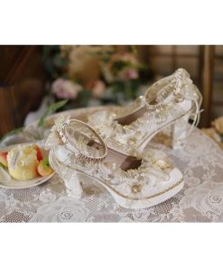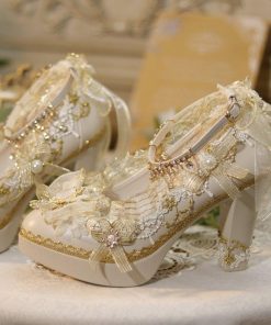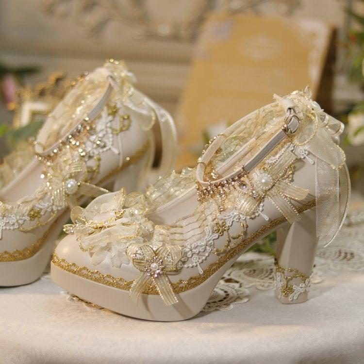 クリアランスサイズ 40 ラインストーン装飾ホワイトとゴールド 6CM ヒールアンクルストラップ