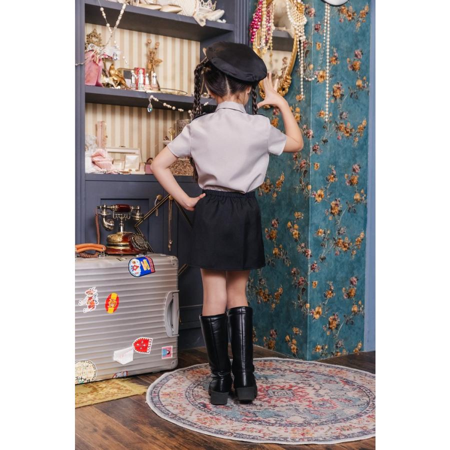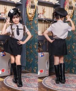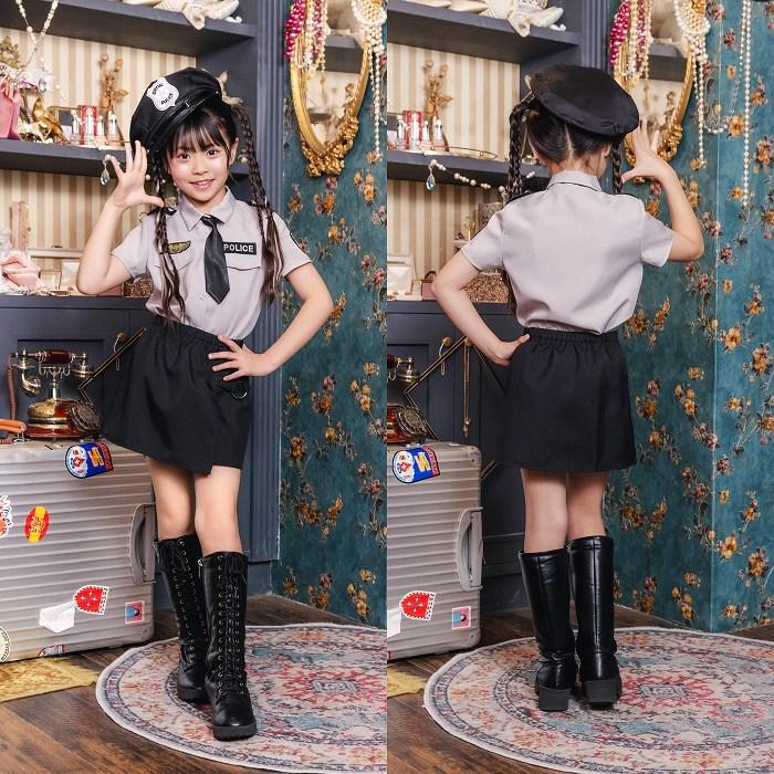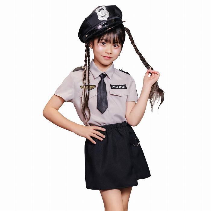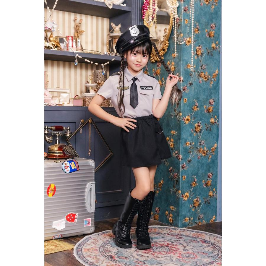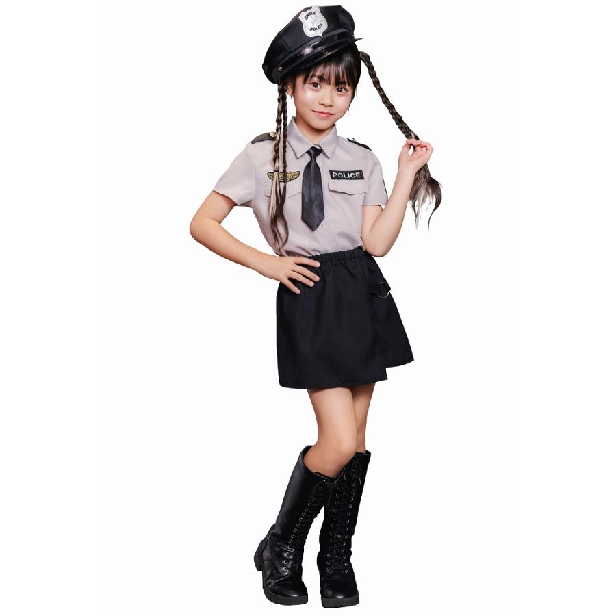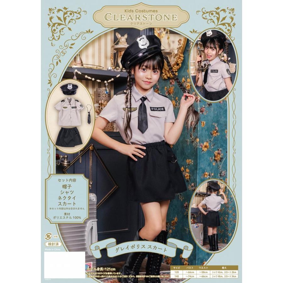 グレイポリススカート キッズ 120 /ポリス コスプレ グレー 婦警 衣装 警察官 なりきり 子供 女の子 仮装 コスチューム ハロウィン イベント (908975)