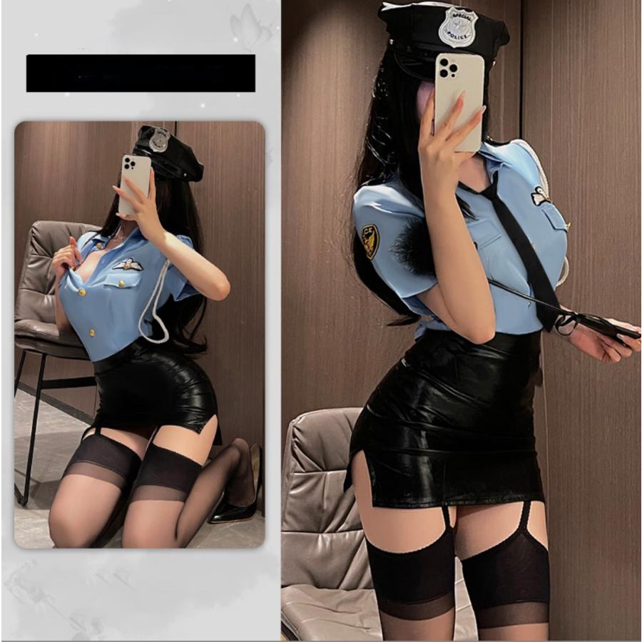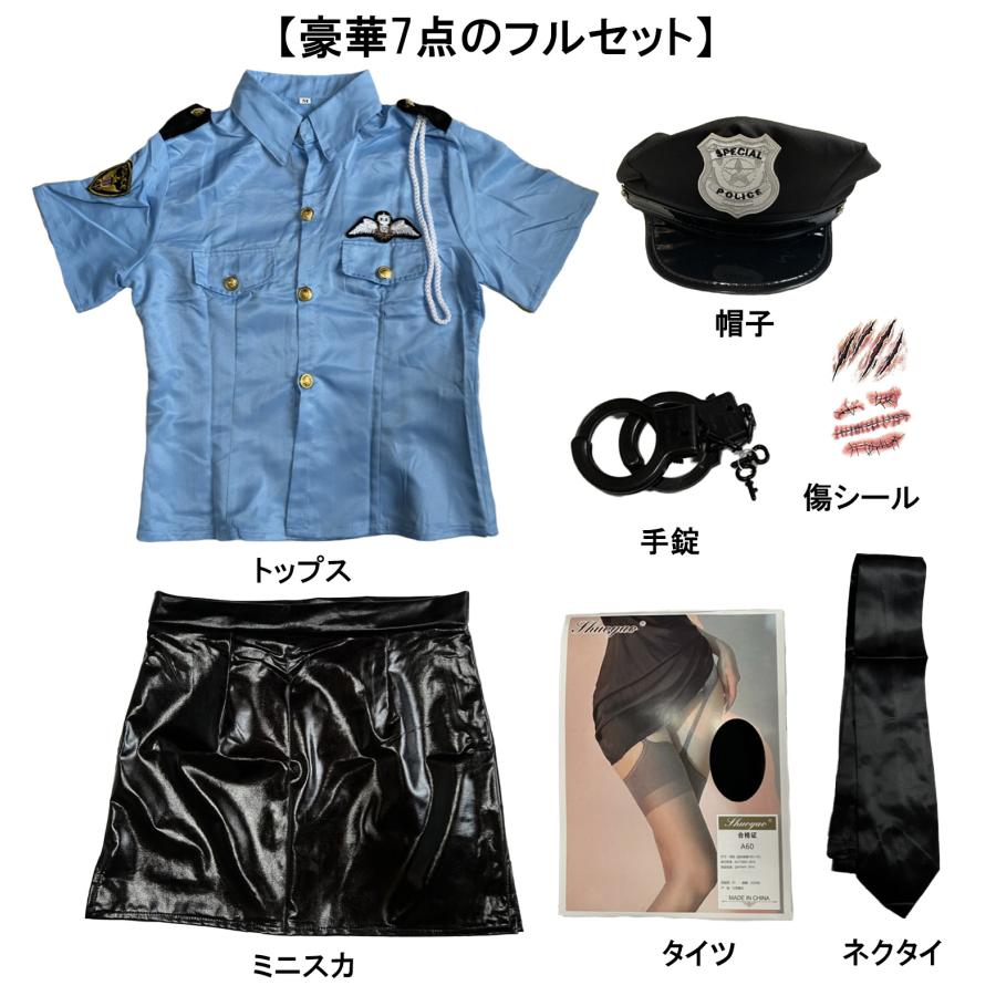 コスプレ ミニスカポリス セクシー 可愛い 婦人警官 警察 ポリス レディース ハロウィン 傷シール付 仮装 7点セット ブルー