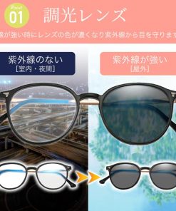 ・調光レンズなので紫外線が当たるとレンズの色の濃さが変わり、適度に見やすい状態を維持。