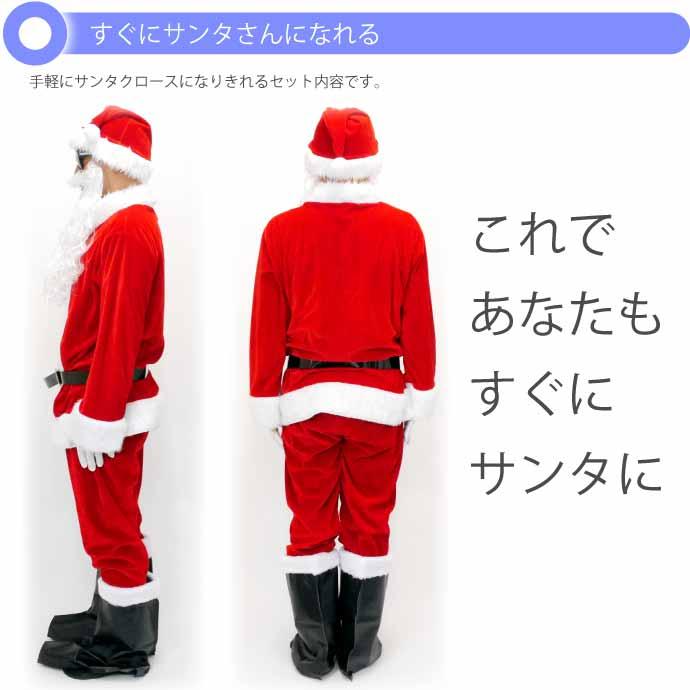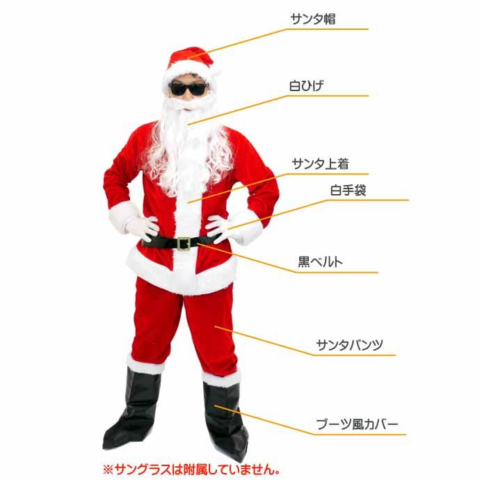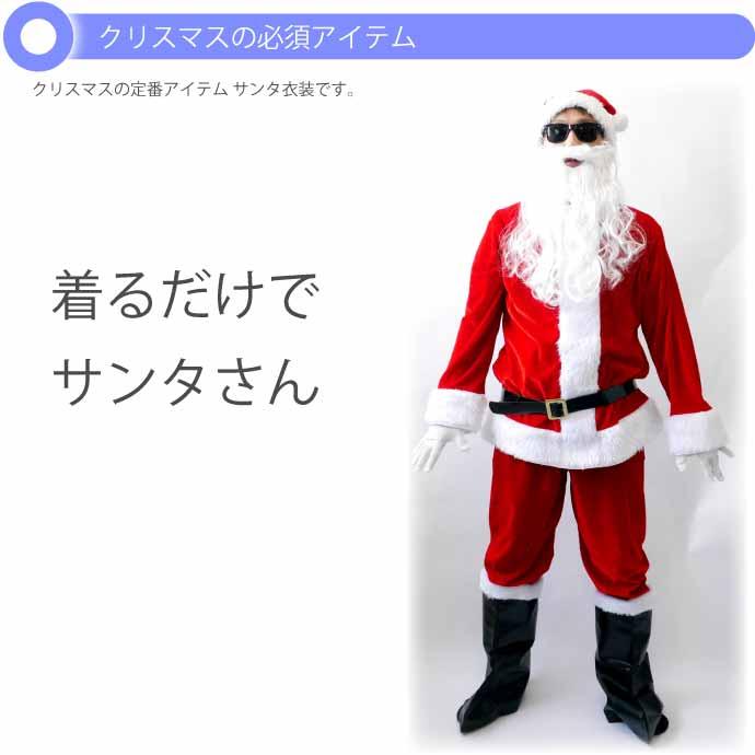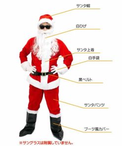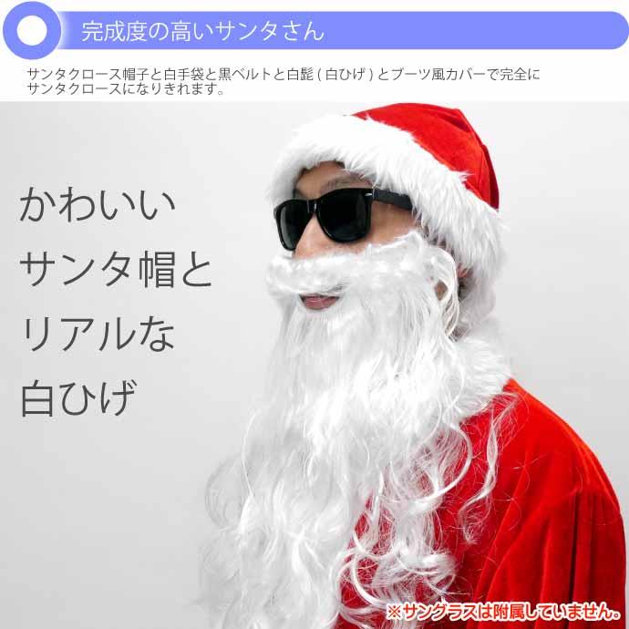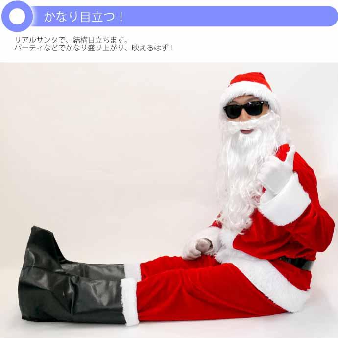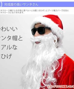 サンタクロース帽子と白手袋と黒ベルトと白髭(白ひげ)とブーツ風カバーで完全にサンタクロースになりきれます。