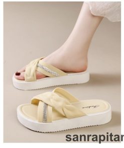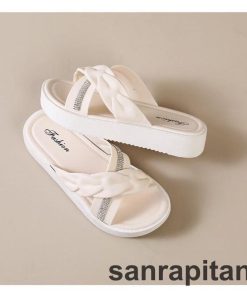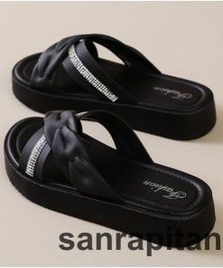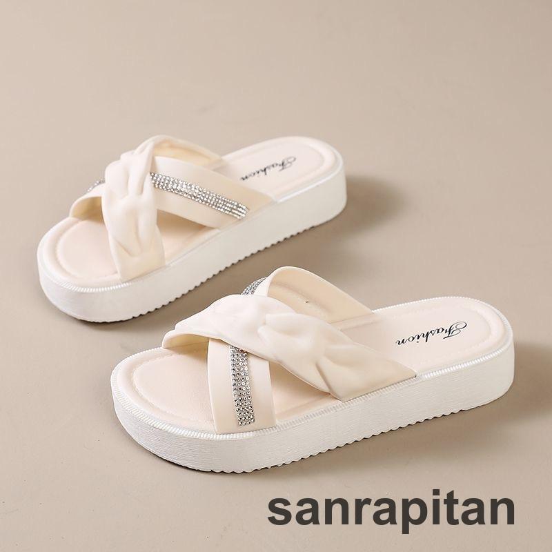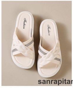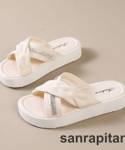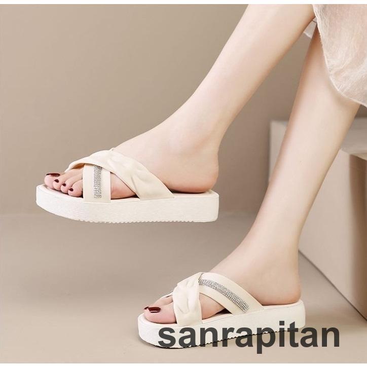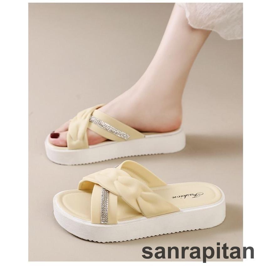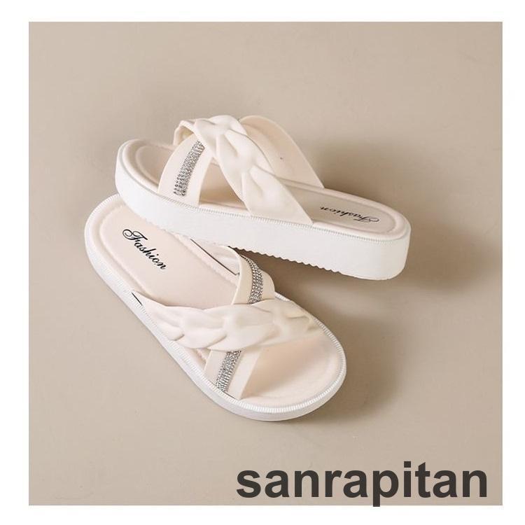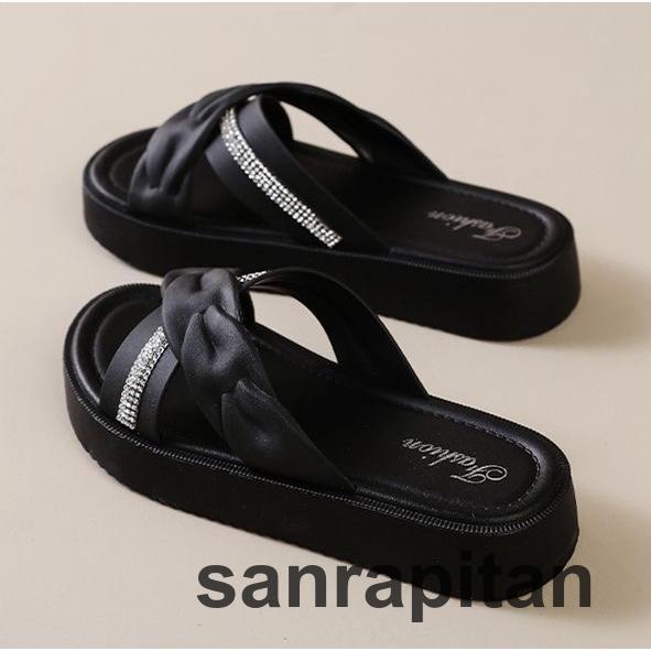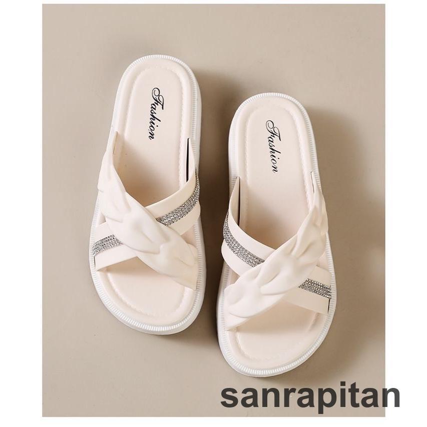 サンダル 厚底サンダル スリッパ フラットサンダル つっかけ レディース 女性 婦人 靴 くつ クロス ラインストーン ぺたんこ かわいい おしゃれ