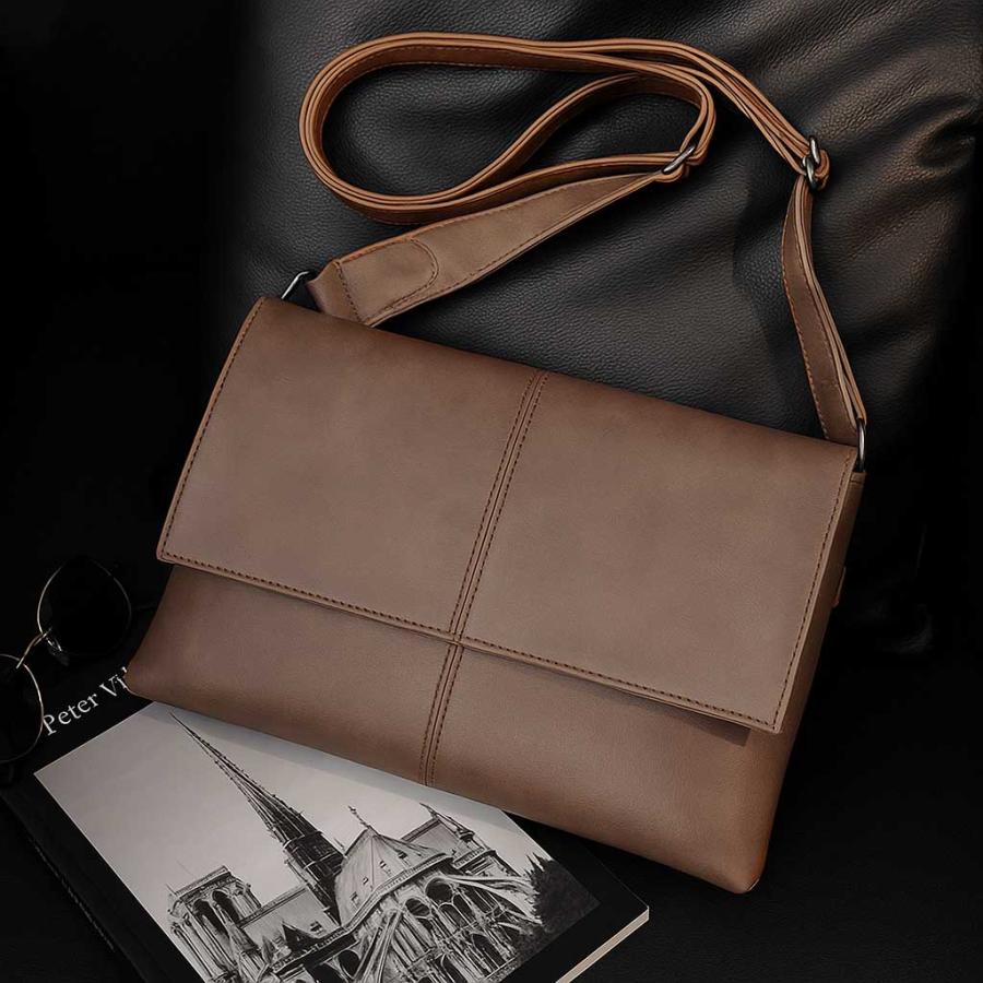 スマートで大人の雰囲気を演出する、PUレザー素材のメンズ用サコッシュ。
