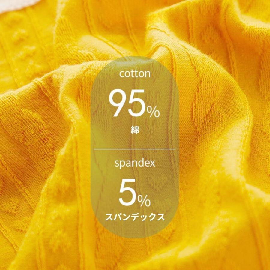 主素材に綿95%を使用し、やわらかで自然な肌触りを実現。デリケートな部分には綿100%を採用し、肌に優しく快適な着用感を提供します。