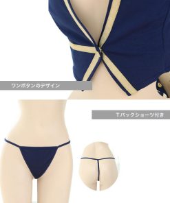 Vネックとヘソ出しルックのデザインで生地を胸元にそわせて胸元をふっくら強調♪パートナーの視線も釘ずけになる事間違いなしです!ワンボタンでセクシーさを更にアップ!