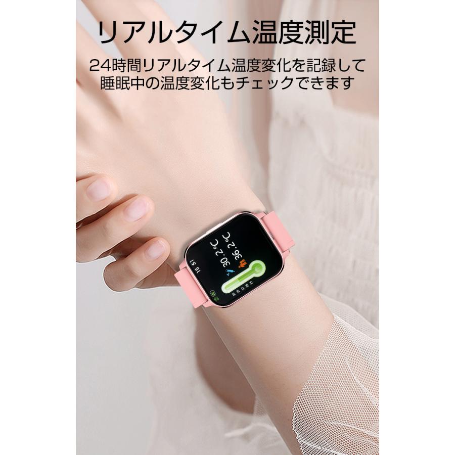 スマートブレスレット スマートウォッチ 血圧測定 血中酸素濃度測定 温度測定 1.7インチタッチスクリーン 24種の運動モード