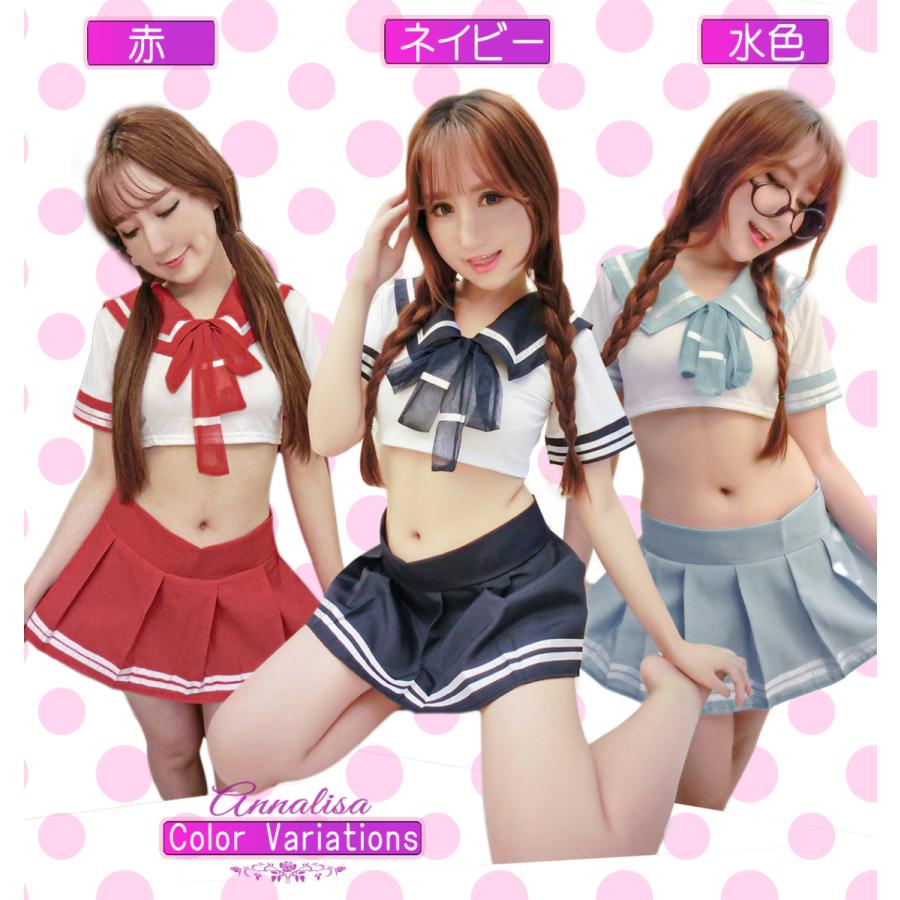 セーラー服 コスプレ セーラー 女子高生 JK 制服 男ウケ 赤 水色 セクシー かわいい 半袖 ミニスカート ハロウィン コスプレ衣装 フルセット