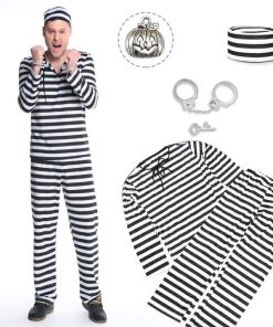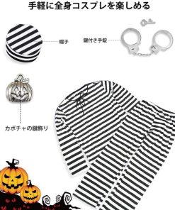 セットアイテムで全身コスプレ囚人パッケージ。手錠とカポチャ鍵飾り付いているのでhalloween costume雰囲気抜群。