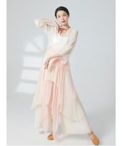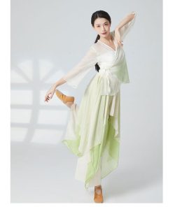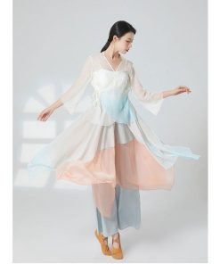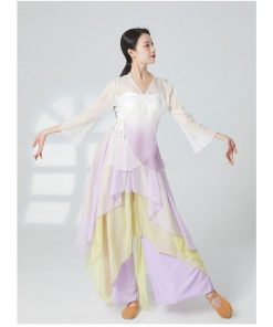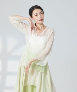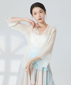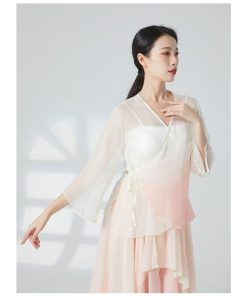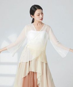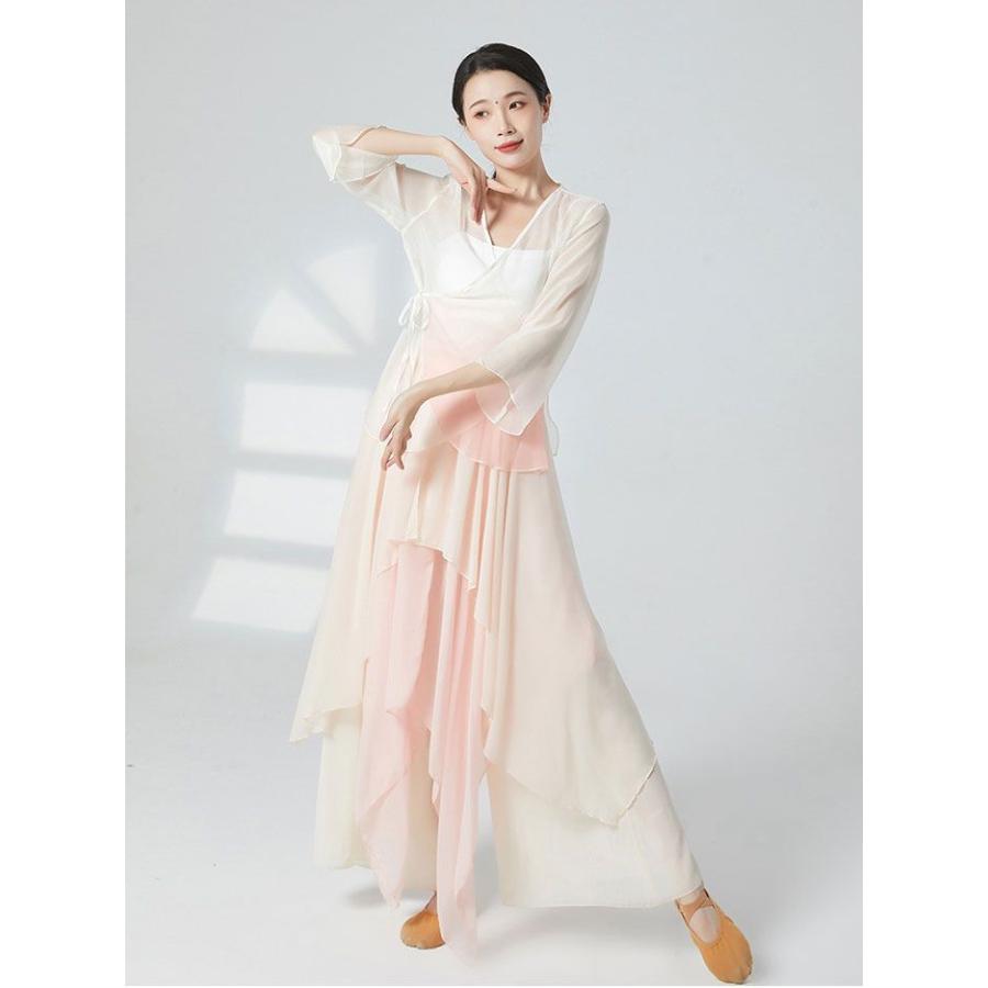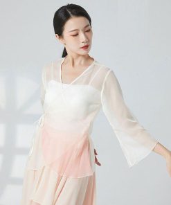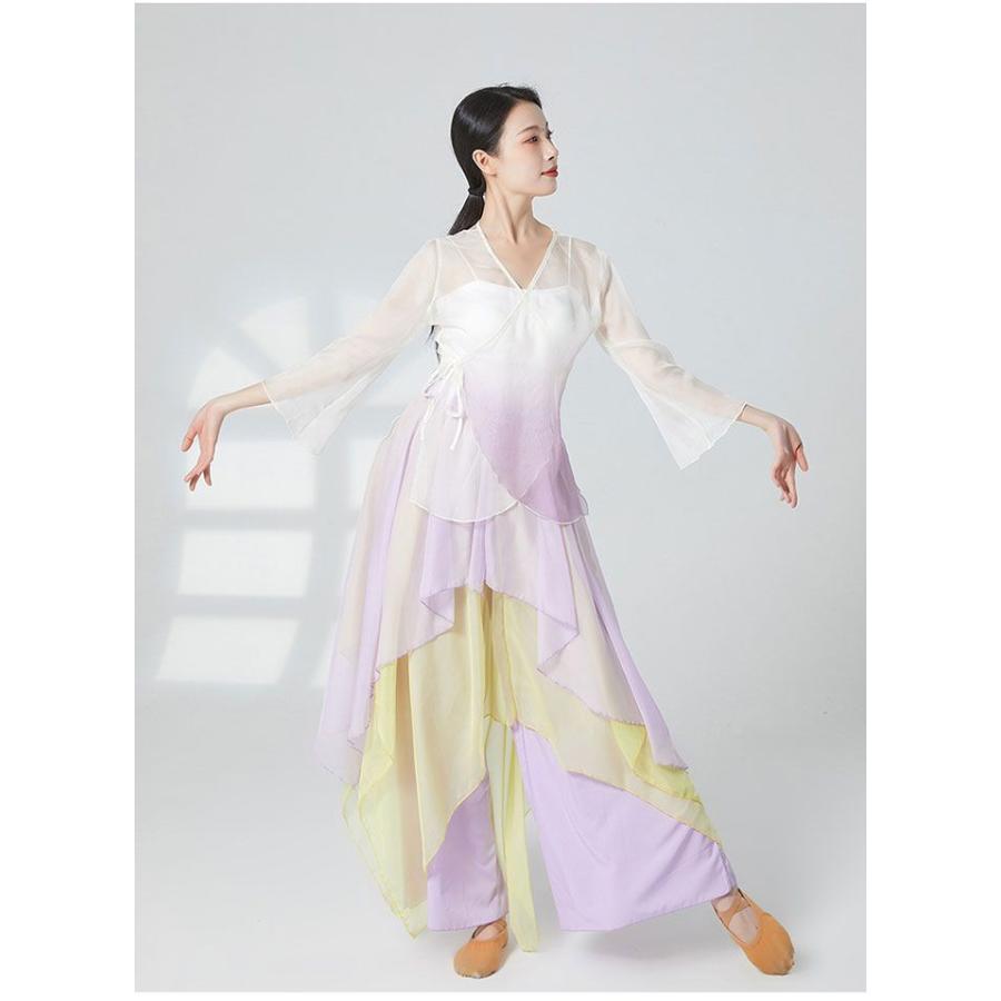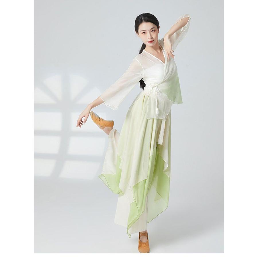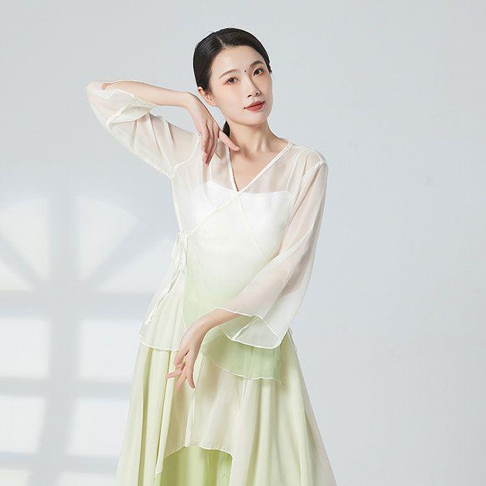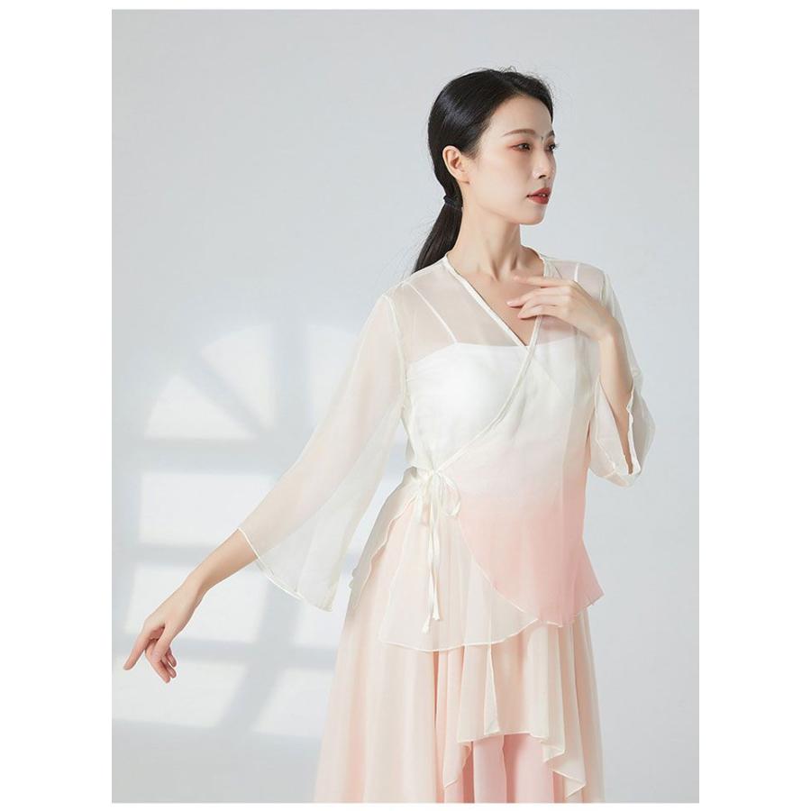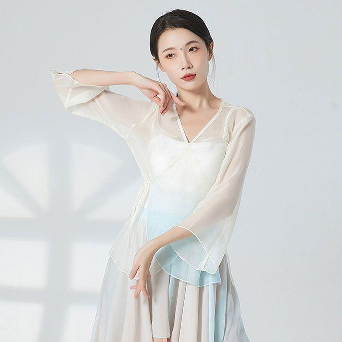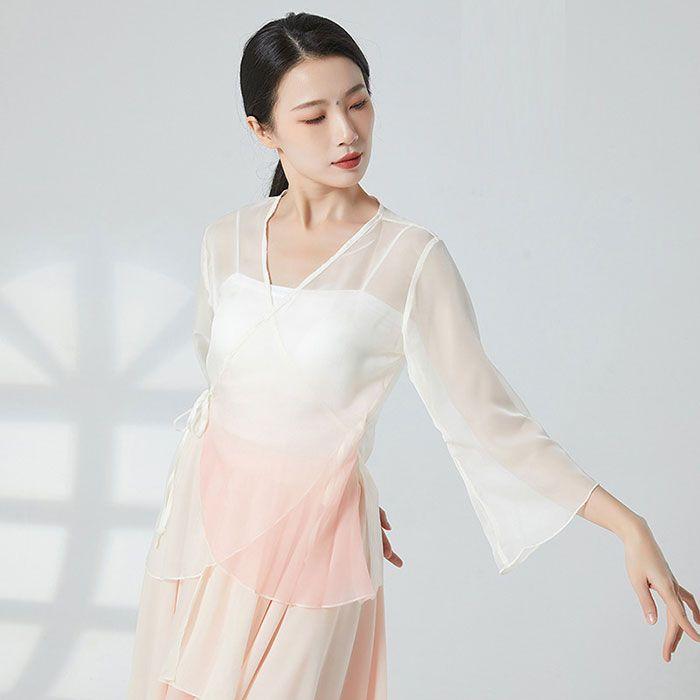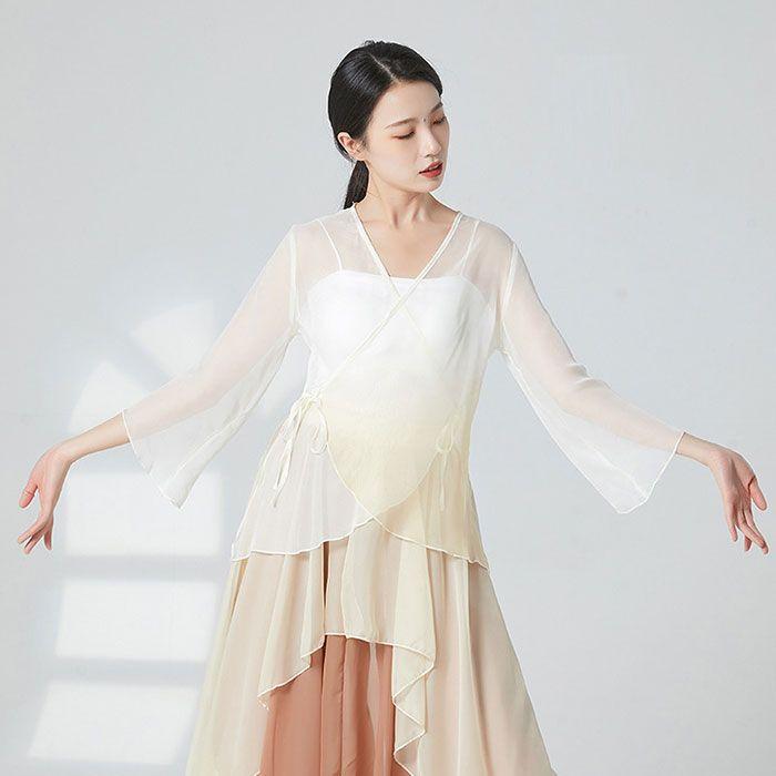 ダンス衣装 トップス シースルー 長袖 ふんわり 美シルエット おしゃれ グラデーション ダンストップス レディース 大人 ダンス 衣装 レッスン着 シフォン 動き