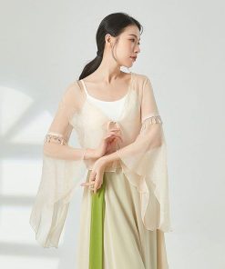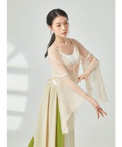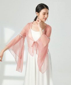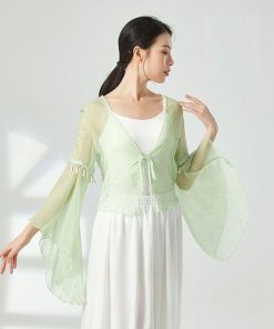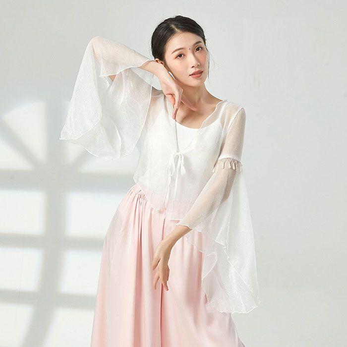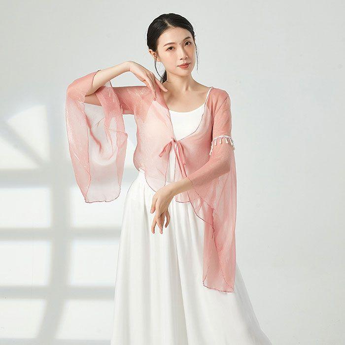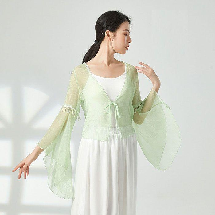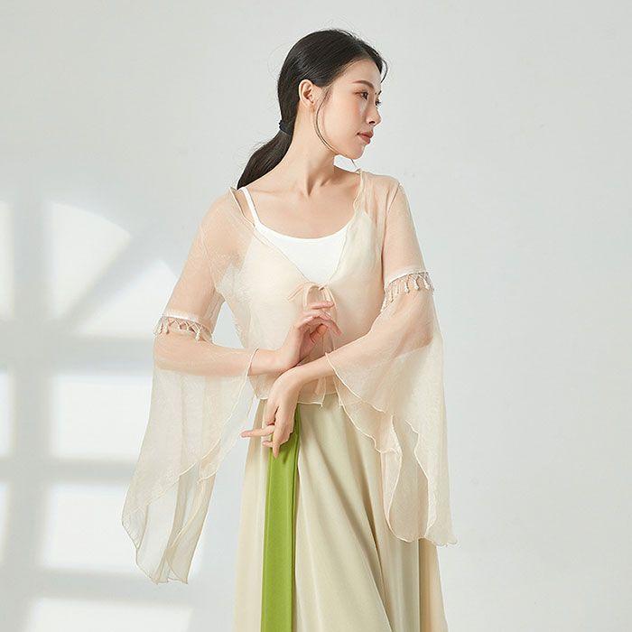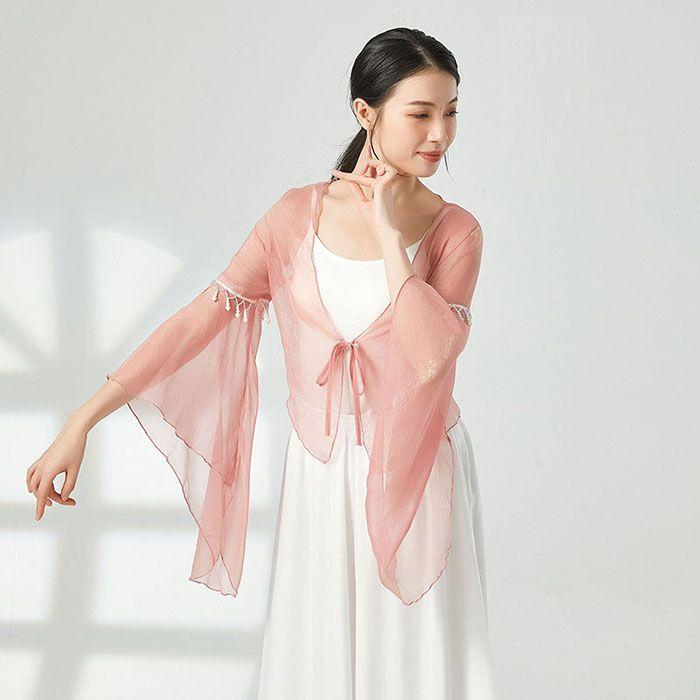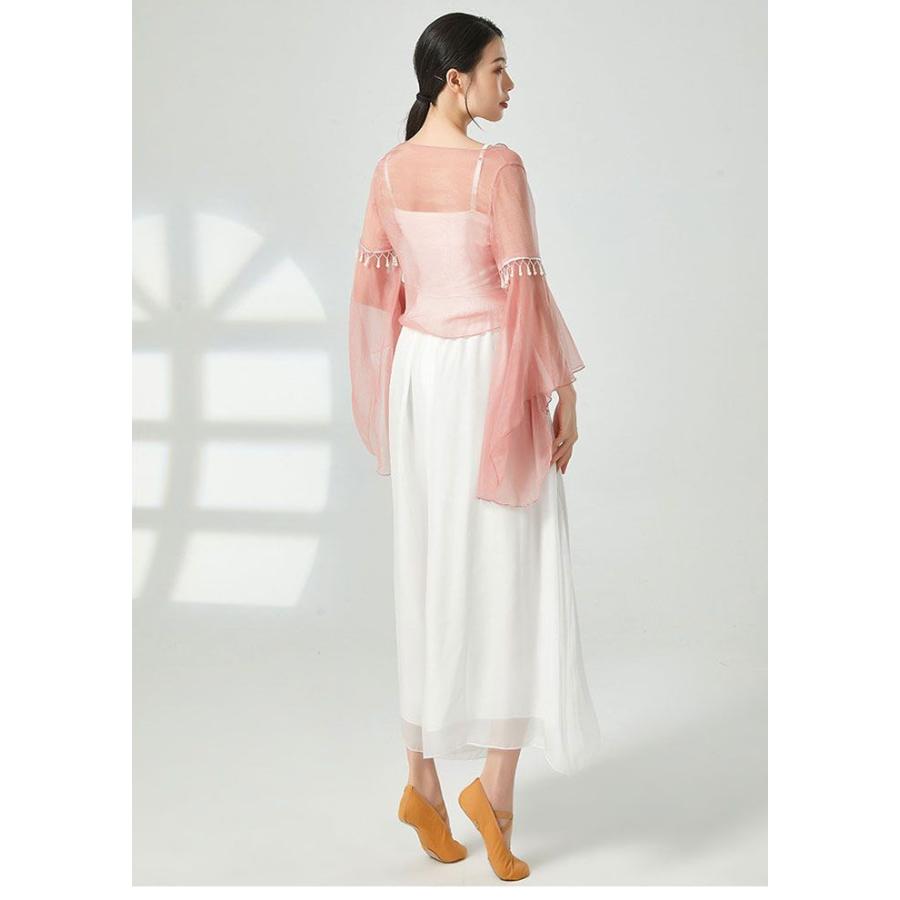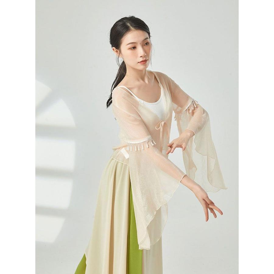 ダンス衣装 トップス シースルー 長袖 ふんわり 美シルエット おしゃれ ビース ダンストップス レディース 大人 ダンス 衣装 レッスン着 シフォン 動きやすい 発
