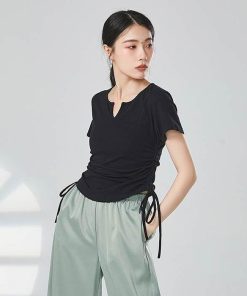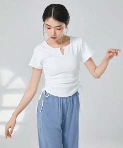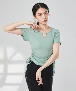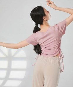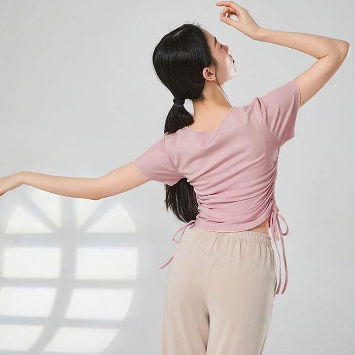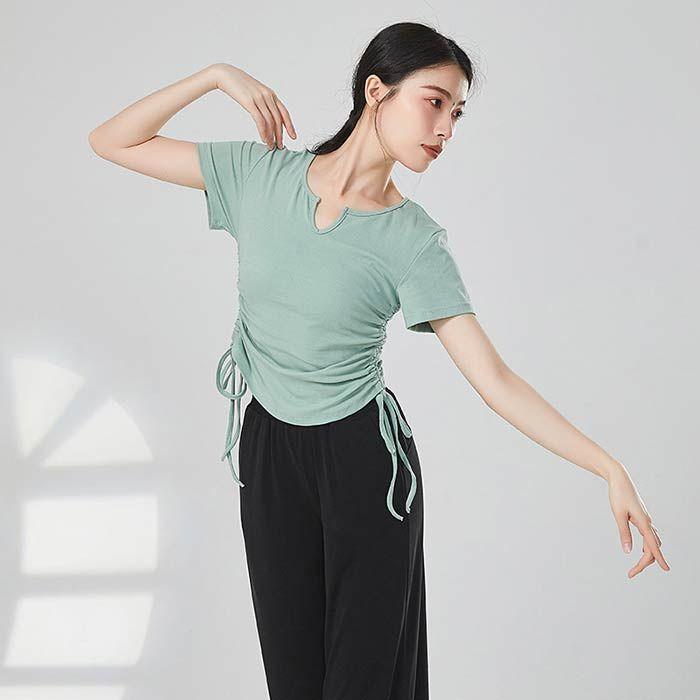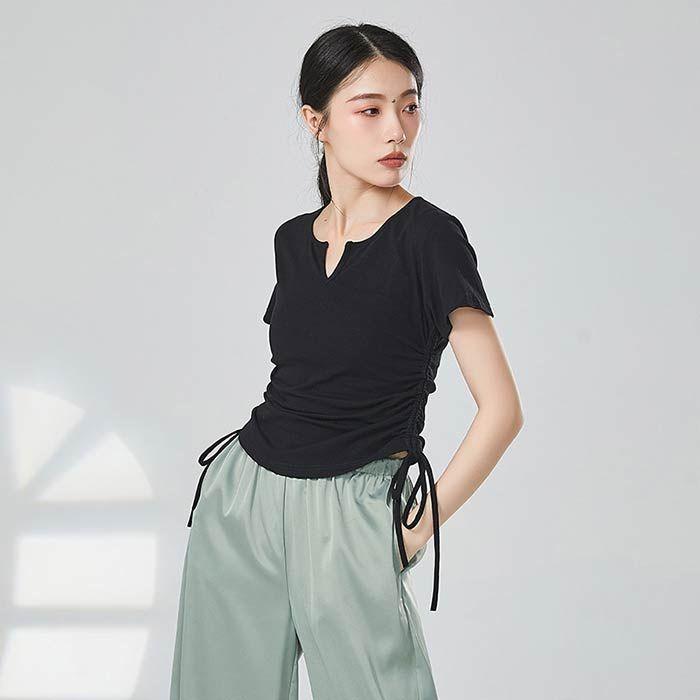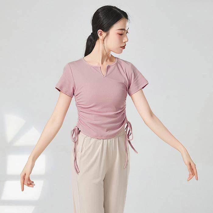 ダンス衣装 トップス 半袖 Tシャツ バレエ衣装 レッスン 着 ヨガ ストレッチ 大人 バレエウエア レディース ダンストップス ベリーダンス Vネック 可愛