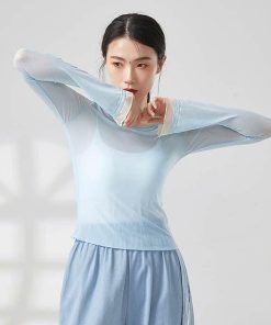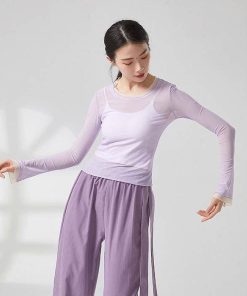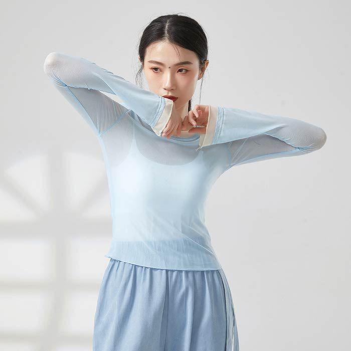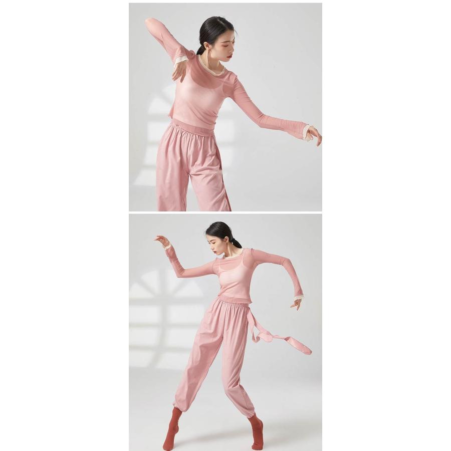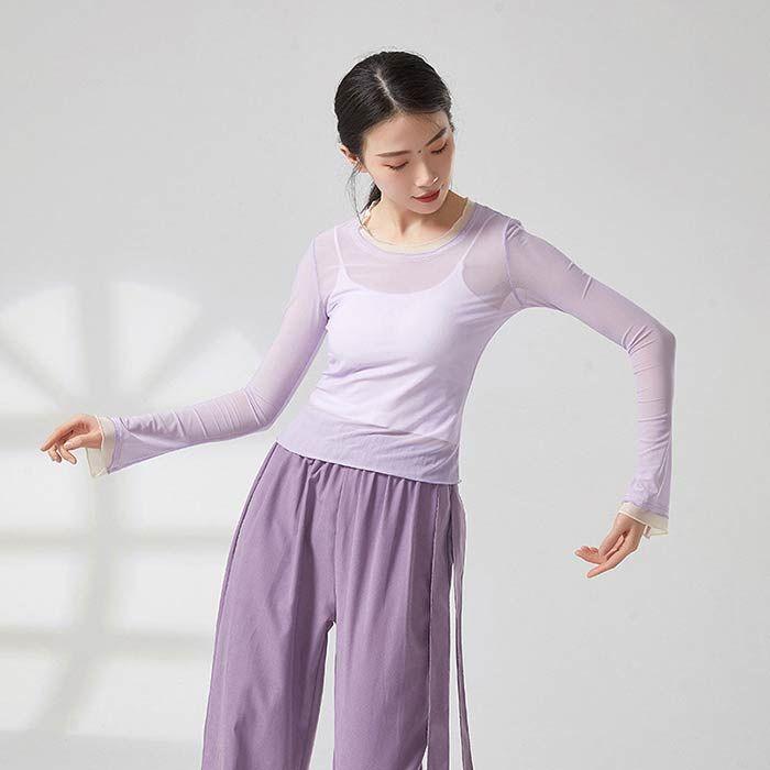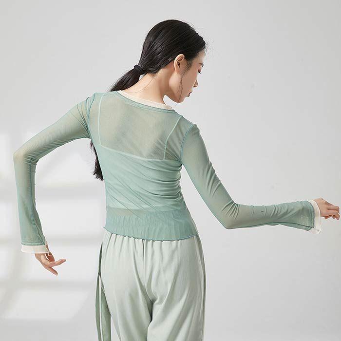 ダンス トップス シースルー レイヤード着風 ブラウス 古典舞踊 ダンス衣装 バレエダンス レディース 大人 衣装 レッスン着 練習着 動きやすい